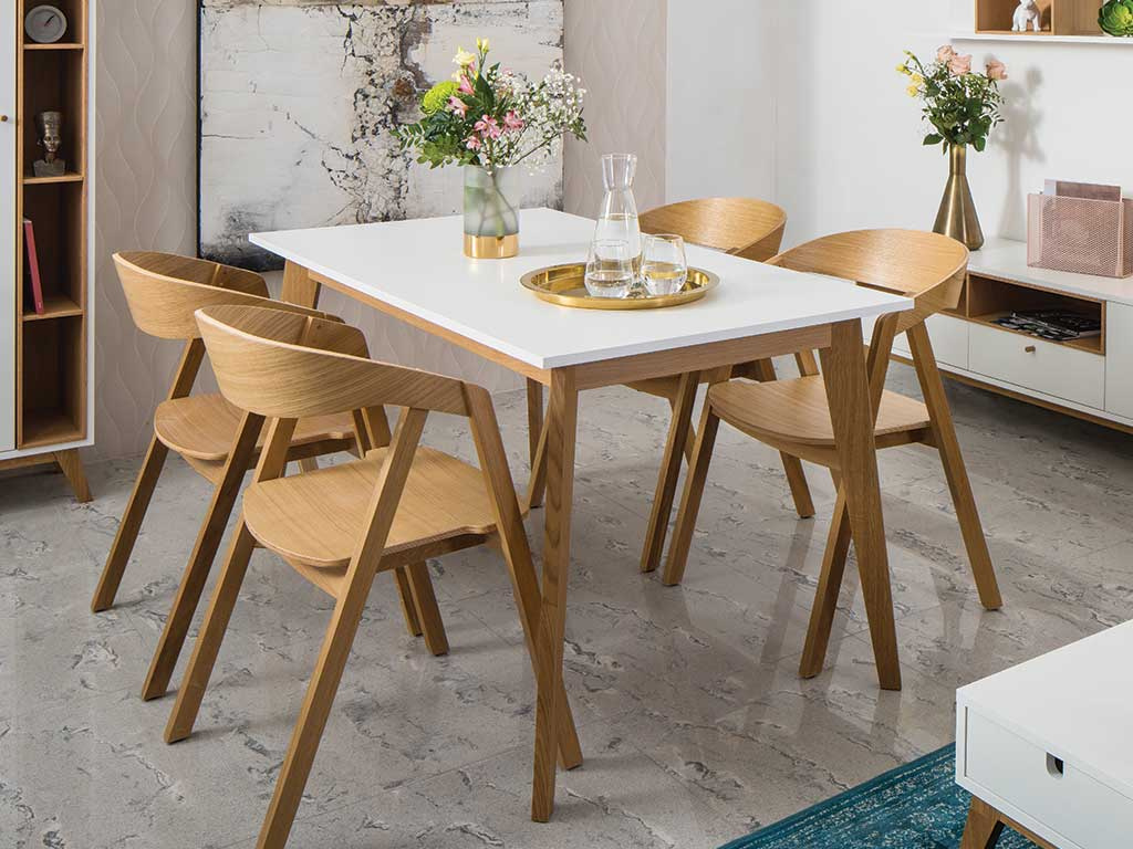 Dřevěný jídelní stůl Thia zaujme svým poutavým vzhledem, který se nechává inspirovat v duchu skandinávského designu. Bíle lakovaná laminátová deska vytváří společně s masivní dubovou podnoží atraktivní kontrast. Díky jemnému, nestárnoucímu spojení bílé barvy a světlého dřeva, si najde místo ve vaší kuchyni či jídelně. Celá kolekce Thia je česká ruční výroba.