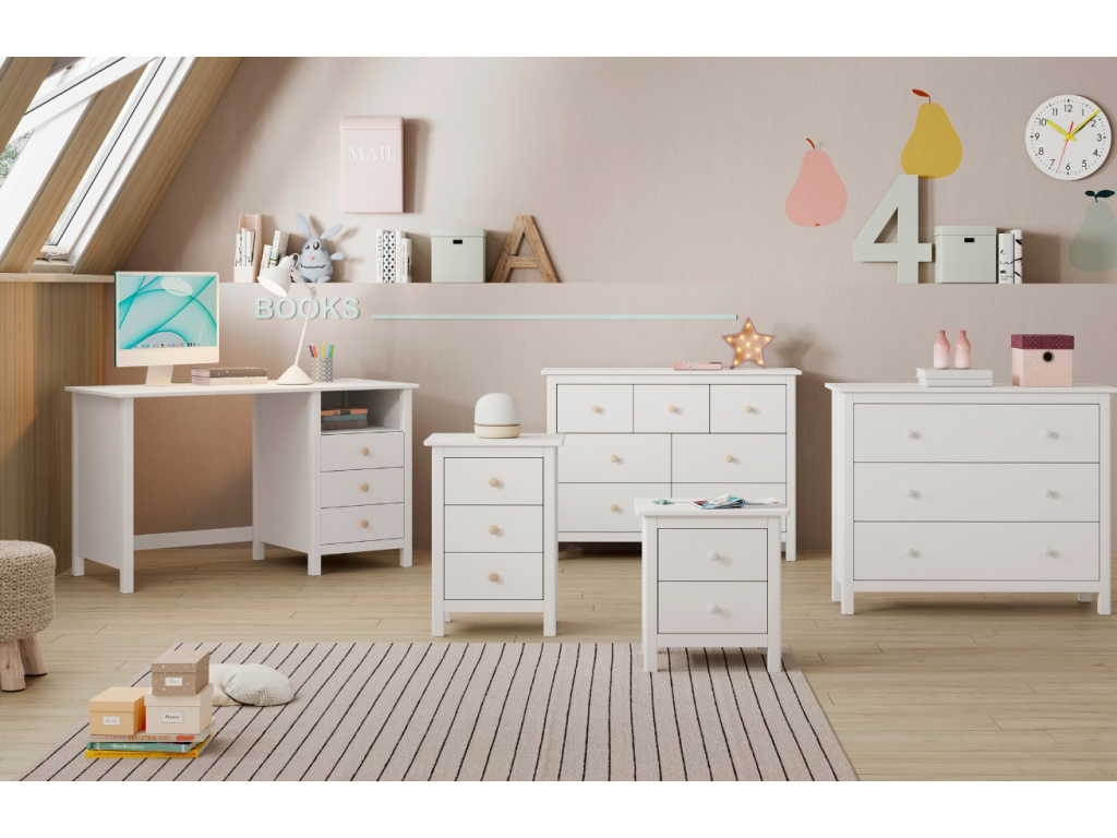 Noční stolek Marckeric Max se stane jedinečným a praktickým doplňkem dětského pokoje nebo vaší ložnice. Obdélníkový lakovaný korpus z borovicového dřeva nabízí úložný prostor ve 3 praktických zásuvkách. Díky svému jednoduchému designu se hodí nejen do moderních, ale i klasických interiérů. Doporučujeme tento kousek kombinovat i s ostatními produkty ze stejné kolekce, získáte díky tomu dokonalou souhru nábytku ve vašem interiéru.