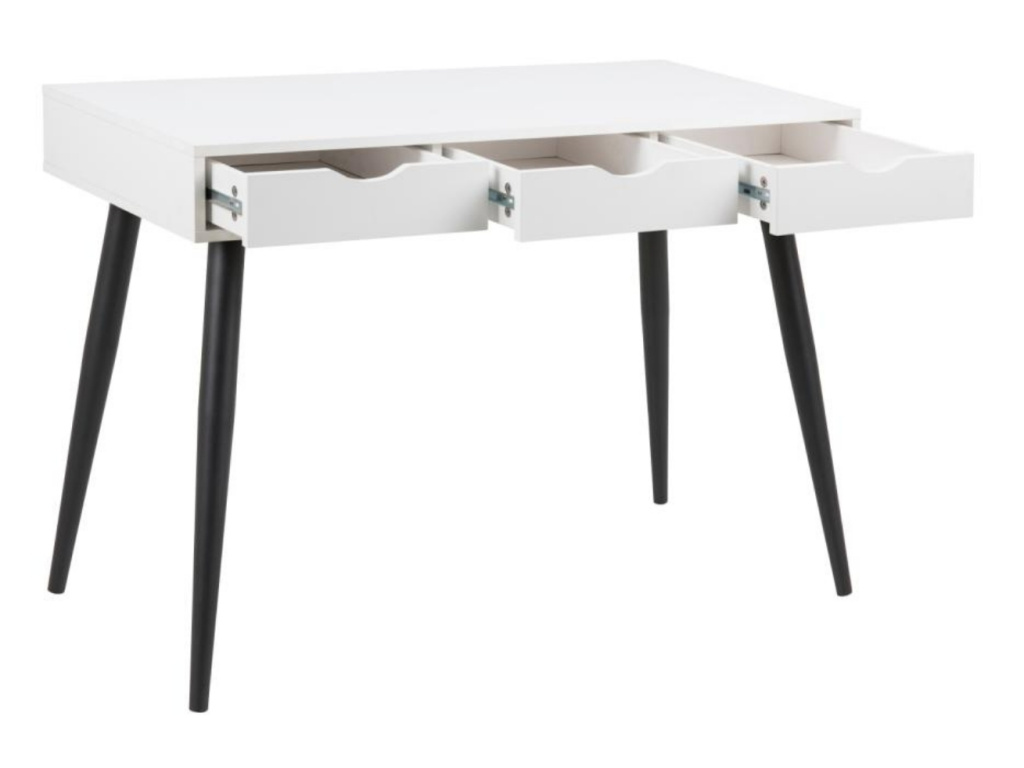 ProhlédnoutBílý dřevěný pracovní stůl Pluto s černou podnoží 110 x 50 cm