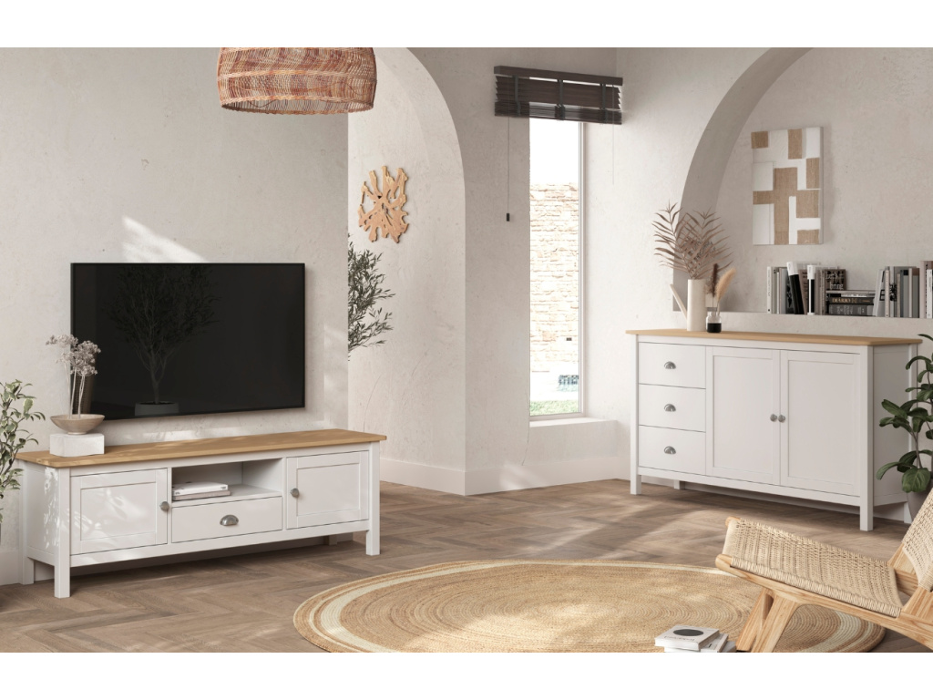 Televizní stolek Misti od značky Marckeric v bílé barvě vyrobený z masivního borovicového dřeva se stane jedinečným a stylovým doplňkem vašeho obývacího pokoje. Obdélníkový lakovaný korpus z masivního dřeva nabízí prostorný úložný prostor díky zásuvce a několika policím. Atraktivní kontrast dodává deska stolku, která je v přírodním borovicovém odstínu. Doporučujeme tento TV stolek kombinovat také s ostatními produkty řady Misti.