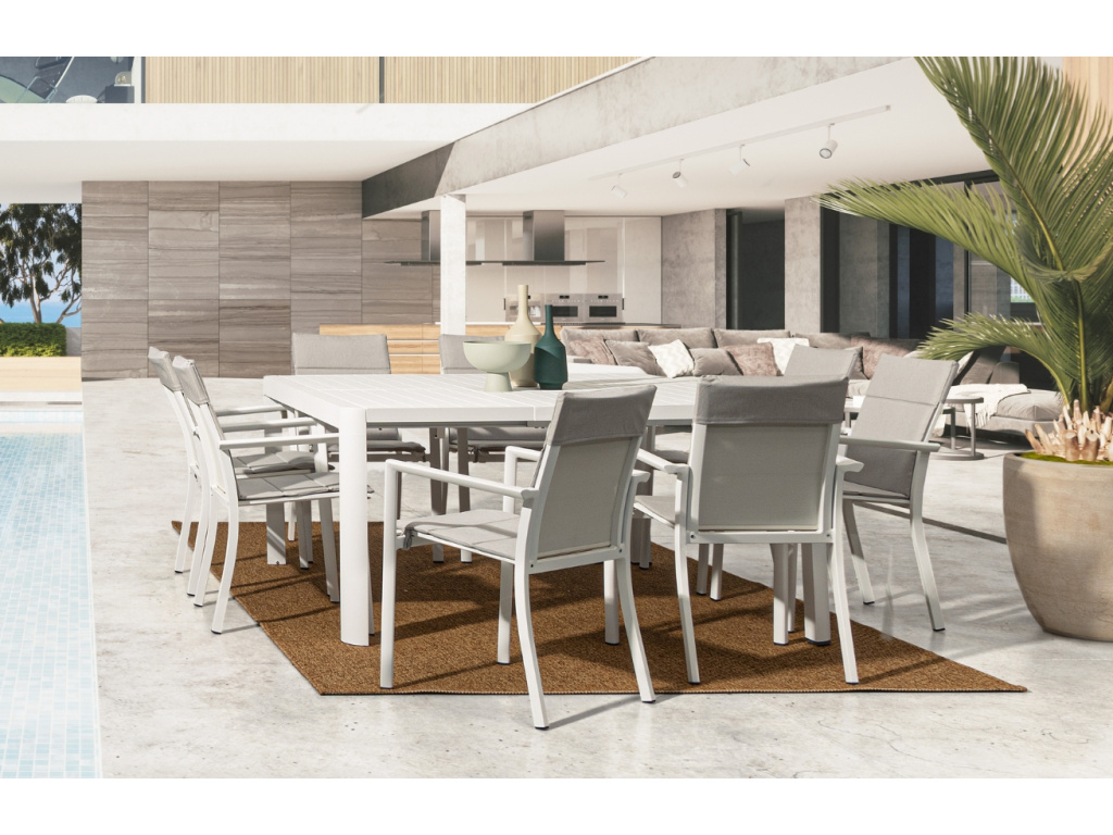 Buďte připraveni i na nečekané návštěvy s praktickým rozkládacím jídelním stolem Kiplin na zahradu od italské značky Bizzotto. Menší obdélníkový jídelní stůl můžete hravě rozložit do tvaru většího čtverce a usadit zde až 8 osob. Kvalitní konstrukce z práškově lakovaného hliníku je upravena pro venkovní prostředí a velmi praktická na údržbu. Zahradní stůl Bizzotto Kiplin nabízíme ve dvou velikostech a třech barevných variantách.