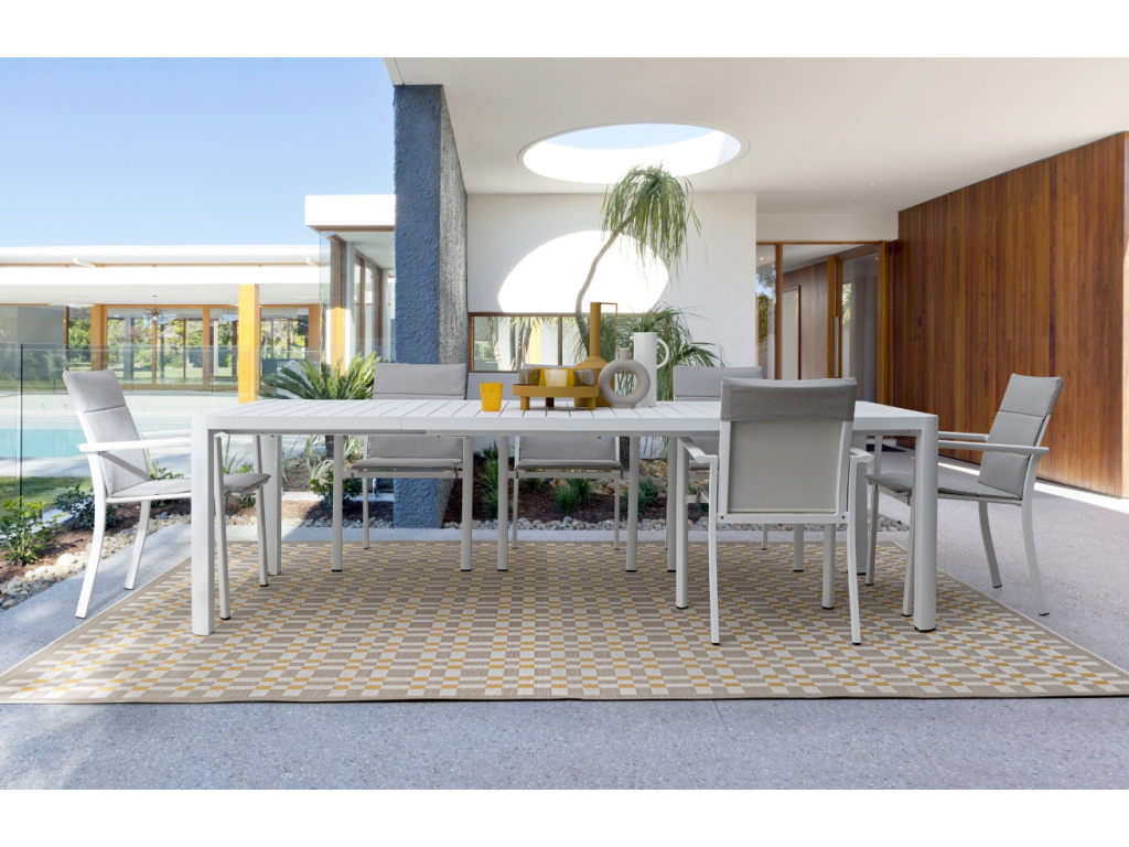 Díky praktickému rozkládacímu jídelnímu stolu Kiplin od italské značky Bizzotto budete vždy připraveni i na nečekané hosty. U tohoto velkého jídelního stolu na zahradu bez problému usadíte až 10 osob. Kvalitní konstrukce z práškově lakovaného hliníku je upravena pro venkovní prostředí a velmi praktická na údržbu. Rozkládání stolu je velmi snadné a hravě jej zvládnete. Zahradní stůl Bizzotto Kiplin nabízíme ve dvou velikostech a třech barevných variantách.