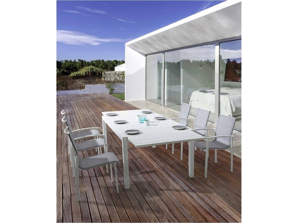 Designový rozkládací jídelní stůl Pelagius od italské značky Bizzotto je praktickým pomocníkem na vaši zahradu či terasu. Kvalitní zpracování z lakovaného kovu zajišťuje vysokou stabilitu a jednoduchou údržbu. Až dorazí vaše rodina či přátelé posedět u dobrého jídla a pití, jistě oceníte možnost rozložit stůl a zvětšit jeho plochu na dvojnásobek původní šířky. Potěší vás jistě také nastavitelné nohy, se kterými snadno ustavíte stůl i na nerovném povrchu. Stůl Pelagius nabízíme ve dvou atraktivních barvách a praktických rozměrech.