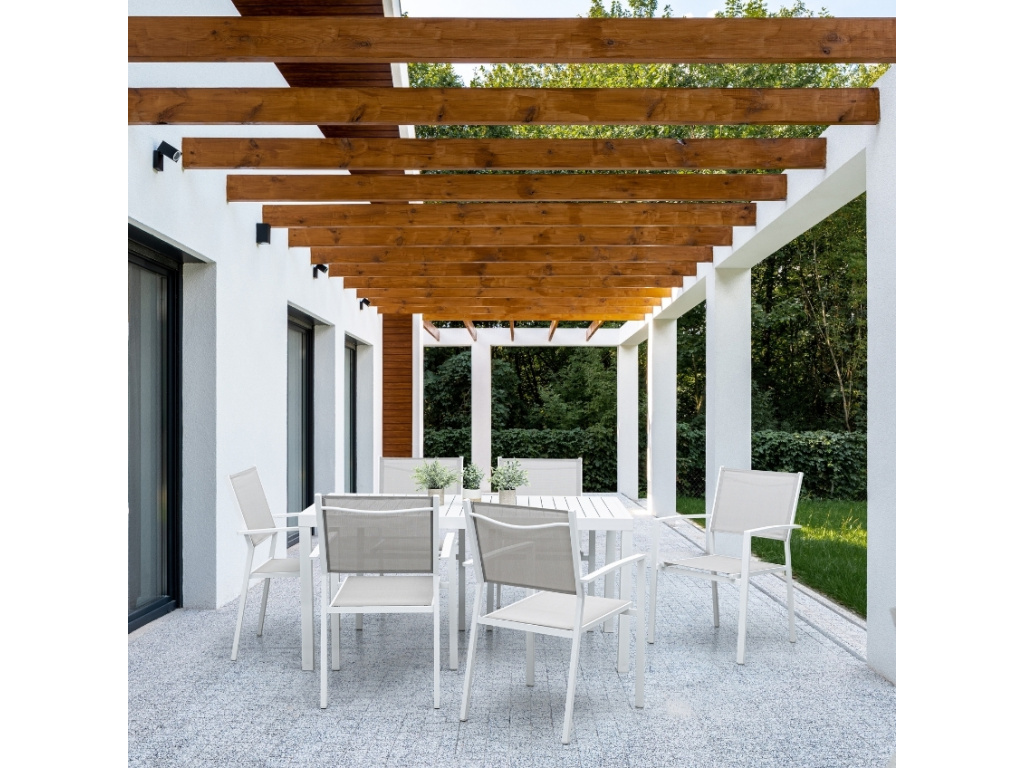 Minimalistický, funkční a odolný – zahradní stůl Hilde bude perfektním doplňkem vaší terasy nebo venkovního posezení. Hliníková konstrukce s práškovým nátěrem zajistí maximální odolnost vůči povětrnostním vlivům a nevyžaduje náročnou údržbu. Díky čistým liniím vnese do exteriéru svěžest a lehkost. Skvěle se bude kombinovat s moderním i skandinávsky laděným nábytkem. Navíc ho snadno sestavíte a jeho kvalitní materiály zaručí, že vám bude dělat radost po mnoho sezón.