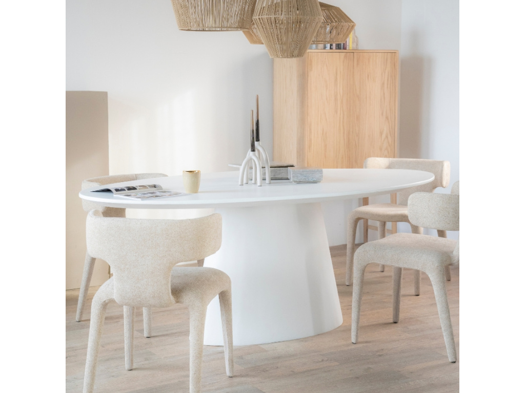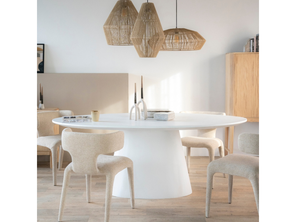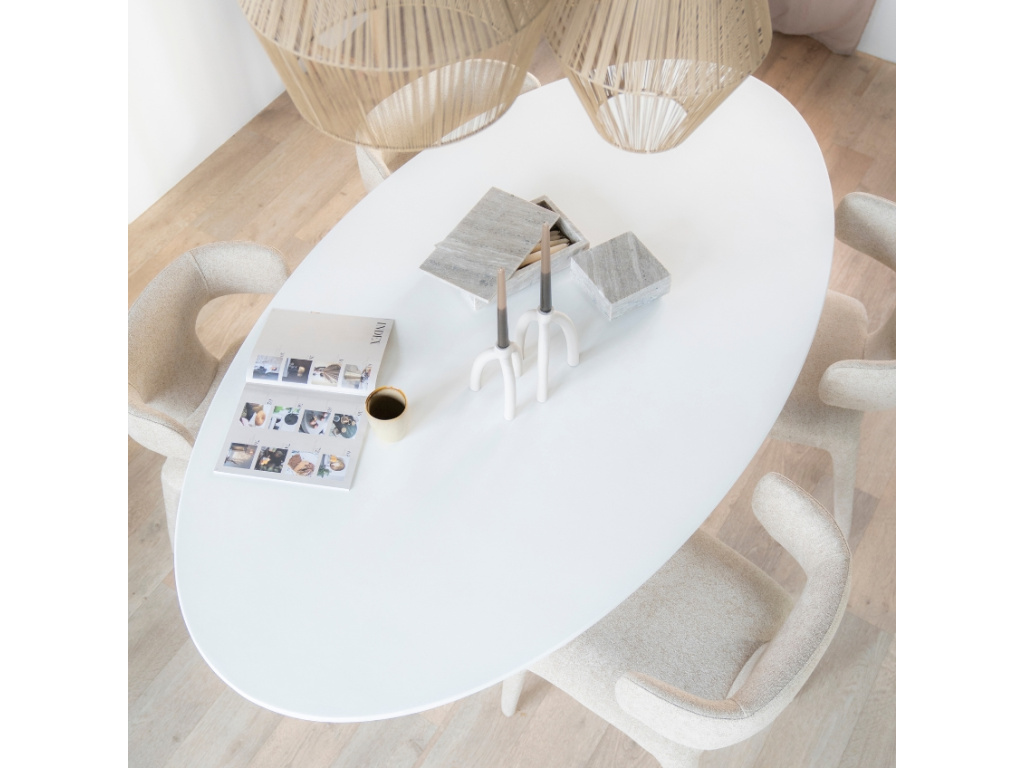 Jídelní stůl Elin od značky Eleonora se stane dokonalým středobodem každého minimalistického i severského interiéru. Tento stůl je vyrobený z vysoce kvalitního oxidu hořečnatého a skelného vlákna v zářivě bílé barvě, která vyzařuje svěží a moderní atmosféru. Oxid hořečnatý je známý svojí vysokou odolností, ale i snadnou údržbou. Kombinace tohoto materiálu a čisté bílé barvy spolu vytvoří jedinečný kontrast ve vaší jídelně. Stůl Elin poskytne útočiště pro přátelská setkání i rodinné večeře, kde si každý den můžete vychutnat svoje oblíbené jídlo.