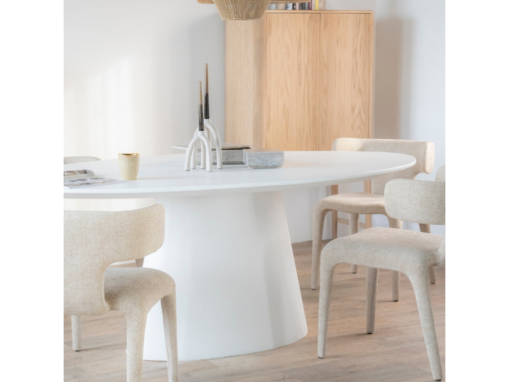 Jídelní stůl Elin od značky Eleonora se stane dokonalým středobodem každého minimalistického i severského interiéru. Tento stůl je vyrobený z vysoce kvalitního oxidu hořečnatého a skelného vlákna v zářivě bílé barvě, která vyzařuje svěží a moderní atmosféru. Oxid hořečnatý je známý svojí vysokou odolností, ale i snadnou údržbou. Kombinace tohoto materiálu a čisté bílé barvy spolu vytvoří jedinečný kontrast ve vaší jídelně. Stůl Elin poskytne útočiště pro přátelská setkání i rodinné večeře, kde si každý den můžete vychutnat svoje oblíbené jídlo.
