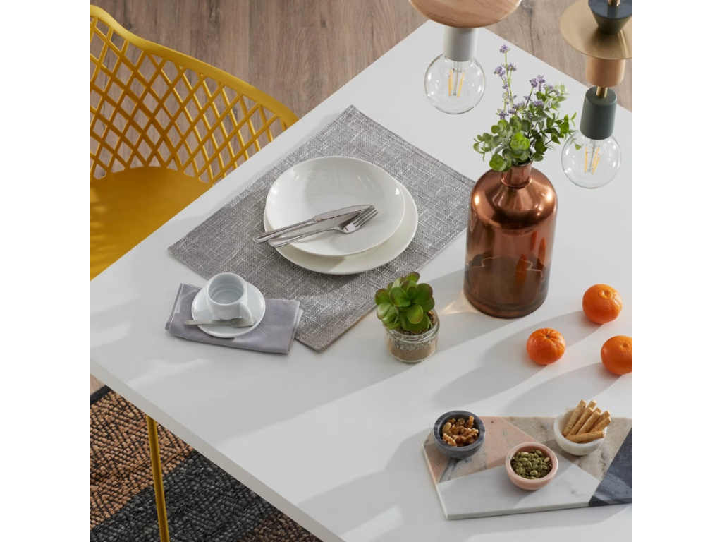 Krásný a nadčasový jídelní stůl Kave Home Argo se pyšní svým originálním a propracovaným designem. Jeho ocelová podnož připomínající hvězdu zajišťuje perfektní stabilitu a navíc každého na první pohled ihned zaujme. Desku tvoří bílý laminát a skvěle se s podnoží doplňuje. Stůl se bude vyjímat v každém moderním interiéru – od skandinávského po industriální styl.