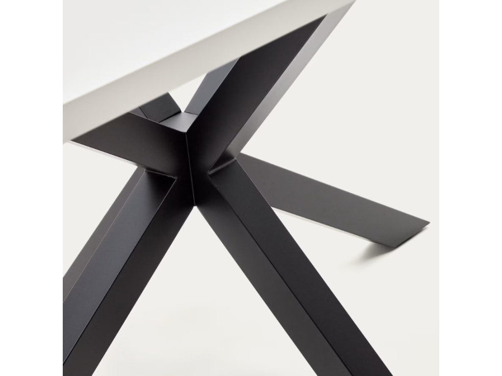 Krásný a nadčasový jídelní stůl Kave Home Argo se pyšní svým originálním a propracovaným designem. Jeho černá ocelová podnož připomínající hvězdu zajišťuje perfektní stabilitu a navíc každého na první pohled ihned zaujme. Desku tvoří bílý laminát a skvěle se s podnoží doplňuje. Stůl se bude vyjímat v každém moderním interiéru – od skandinávského po industriální styl.