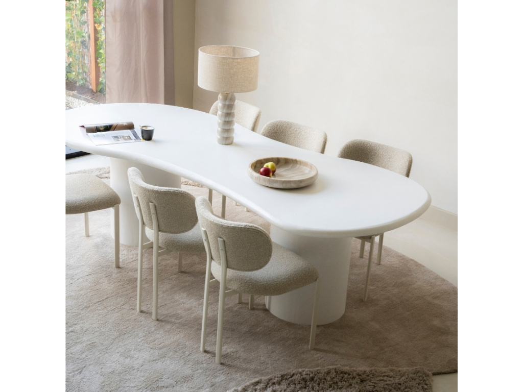 Jídelní stůl Seki představuje nadčasovou eleganci spojenou s moderními materiály a čistými liniemi. Deska stolu má organický nepravidelný tvar, který připomíná přírodní kámen a jídelně dodá neformální, hravý akcent. Jeho masivní podnož zaručujíce maximální stabilitu. Čistě bílá barva stolu se bude krásně kombinovat s širokou škálou barev ostatních kusů nábytku a dekorací. Stůl Seki je nejen skvělým místem pro společné chvíle s rodinou, ale i stylovým prvkem, který upoutá pozornost každé návštěvy.