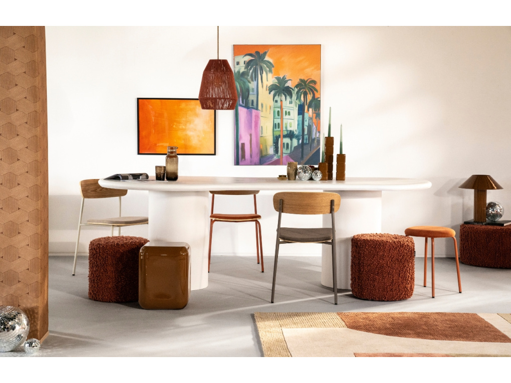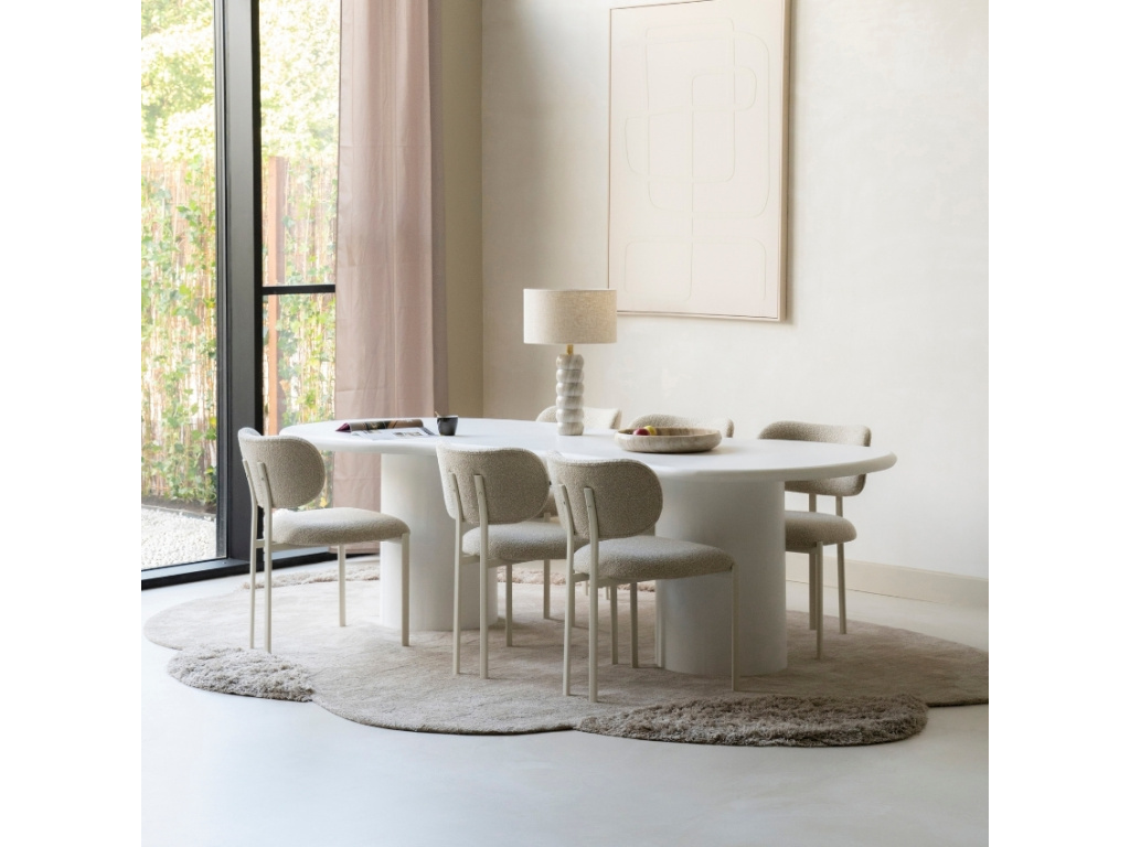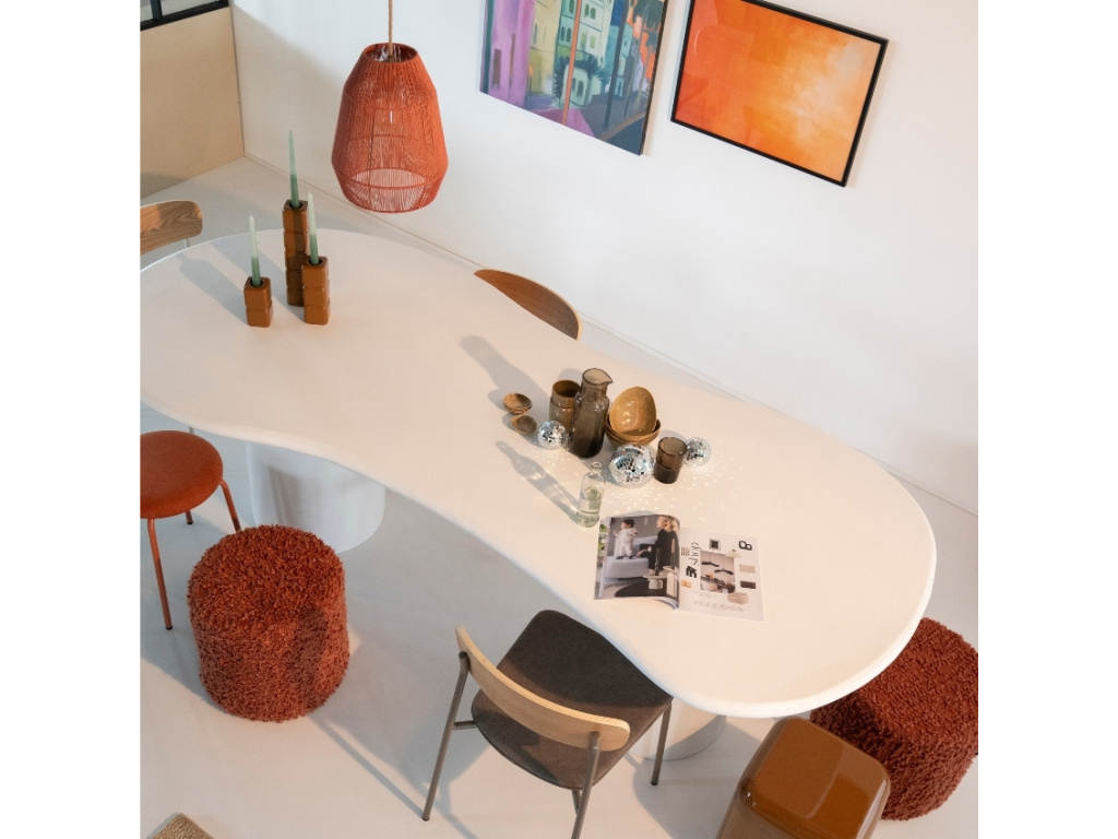 Jídelní stůl Seki představuje nadčasovou eleganci spojenou s moderními materiály a čistými liniemi. Deska stolu má organický nepravidelný tvar, který připomíná přírodní kámen a jídelně dodá neformální, hravý akcent. Jeho masivní podnož zaručujíce maximální stabilitu. Čistě bílá barva stolu se bude krásně kombinovat s širokou škálou barev ostatních kusů nábytku a dekorací. Stůl Seki je nejen skvělým místem pro společné chvíle s rodinou, ale i stylovým prvkem, který upoutá pozornost každé návštěvy.