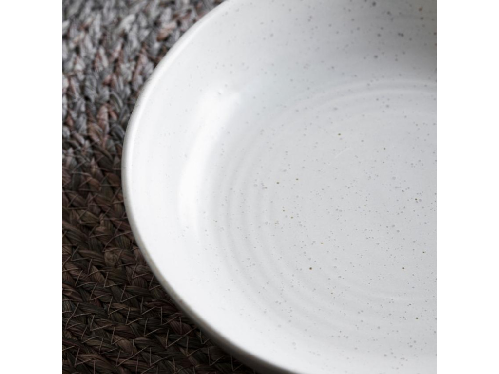 Hluboký talíř Pion zaujme na první pohled svým čistým a nadčasovým vzhledem. Je vyroben z kvalitní kameniny, která je následně glazována matně bílou barvou s jemnými skvrnkami. Právě díky této neutrální barvě se bude hodit ke každé současné jídelní soupravě a dalším keramickým předmětům. Zkombinujte ho s dalším nádobím z řady Pion a dolaďte uspořádání vašeho stolu oblíbeným ubrusem.