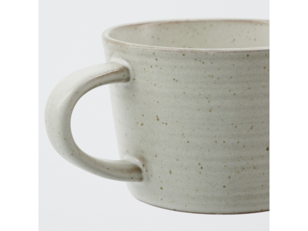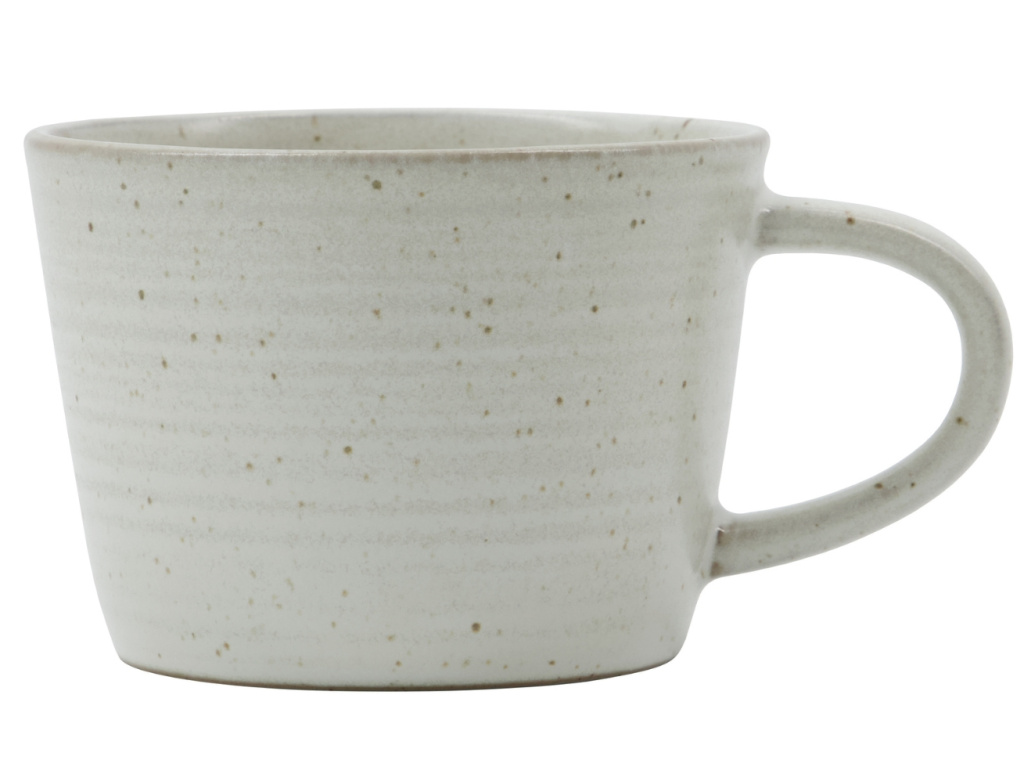 Kameninový šálek s podšálkem Pion značky House Doctor s bílou kropenatou glazurou v matném provedení zaujme na první pohled. Velká rukojeť usnadňuje držení šálku, zatímco podšálek nabízí praktický prostor pro odkládání lžičky. Dopřejte si příjemné posezení s čajem nebo kávou v tomto šálku Pion s objemem 0,23 l, jeho design v minimalistickém a tak trochu rustikálním stylu snadno zapadne do všech světlých a moderních domácností. Nezapomeňte ho doplnit o další nádobí ze série Pion a vyšperkujte tak servírování k dokonalosti!
