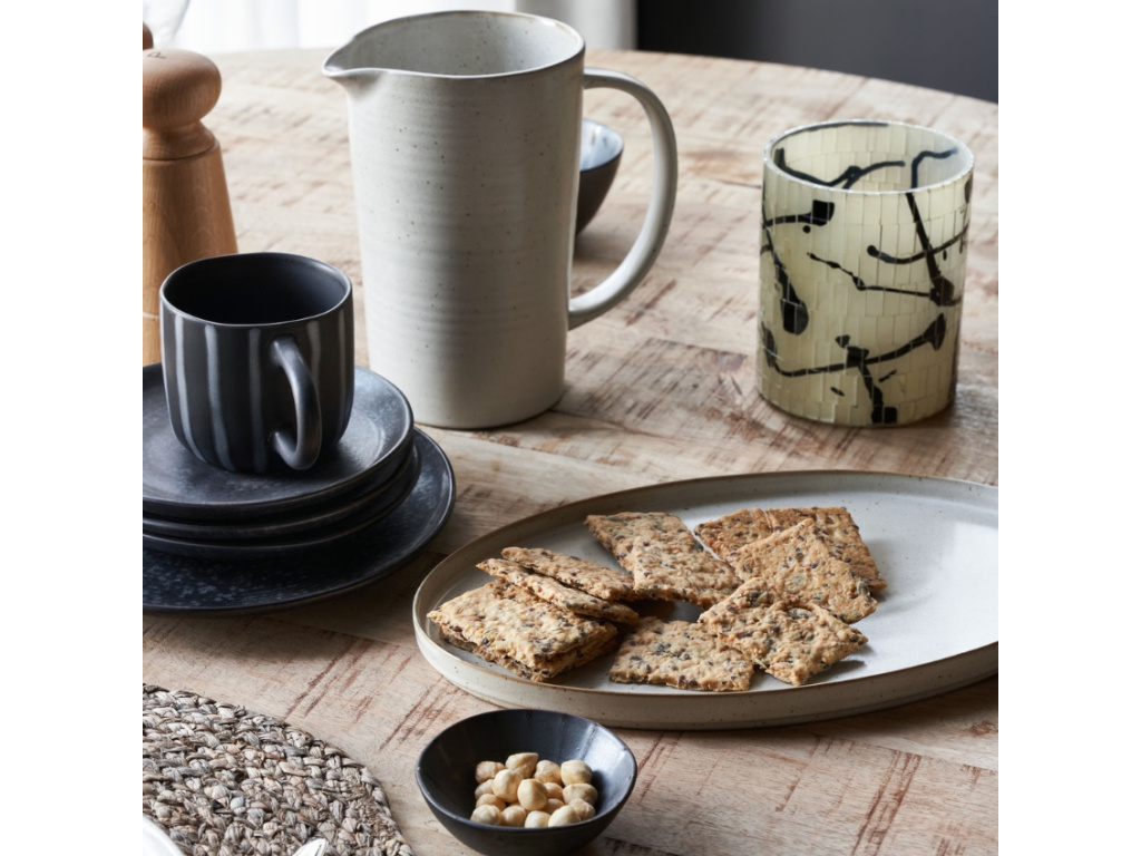 Oválný servírovací talíř Pion s vyvýšeným okrajem povznese vaše stolování na vyšší úroveň. Cokoliv od salátu po dezert na něm bude vypadat chutně a fantasticky. Je vyroben z kameniny s bílou kropenatou glazurou v matném provedení, která mu udává nenucený charakter, u kterého však je současně kladen důraz na detail. Talíř je praktickým kouskem pro pohoštění v neformálních duchu, ať už to jsou rodinné oslavy nebo grilovačky s přáteli. Tento servírovací talíř bude vypadat skvěle s dalším nádobím z řady Pion, ve které si každý najde to své.