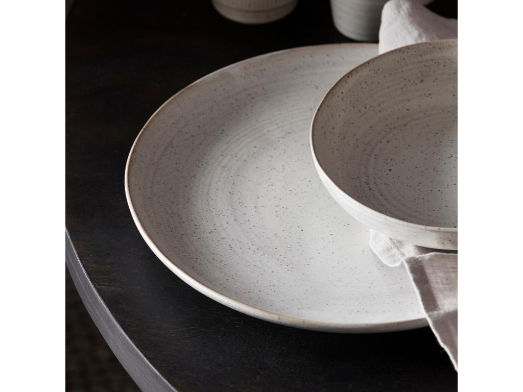 Servírovací mělký talíř Pion zaujme na první pohled svým čistým, minimalistickým designem. Vyroben je z kvalitní kameniny a matně bílé glazury s jemnými skvrnkami. Právě díky této neutrální barvě se bude hodit ke každé současné jídelní soupravě a dalším keramickým předmětům. Můžete ho také zkombinovat s dalším nádobím ze stejné řady Pion a doladit tak stolování vašeho jídelního stolu k úplné dokonalosti!