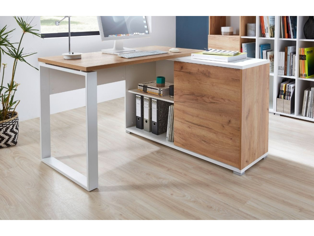 To chciBílý kancelářský stůl Lioni 120 cm s dubovým dekorem