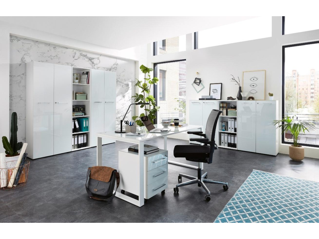 Moderní kancelářský stůl Monteria od značky GERMANIA je perfektním kouskem do vaší kanceláře. Jednoduchá, bílá barva laminátové desky ve vysokém lesku vytváří jemný a čistý vzhled, který do vašeho interiéru vnese nádech minimalistického designu. Vrchní deska je vyrobena z tvrzeného skla. Povrchová úprava desky z melaminové pryskyřice poskytuje nárazuvzdorný a vlhkosti odolný povrch. Díky nárazuvzdorným ABS hranám máte vyšší jistotu odolnosti, díky čemuž se skvěle hodí nejen do komerčních prostor, ale také do domácích pracoven. Perfektní stabilitu zajišťuje lakovaná kovová podnož. Doporučujeme kombinace všech produktů z řady Monteria.