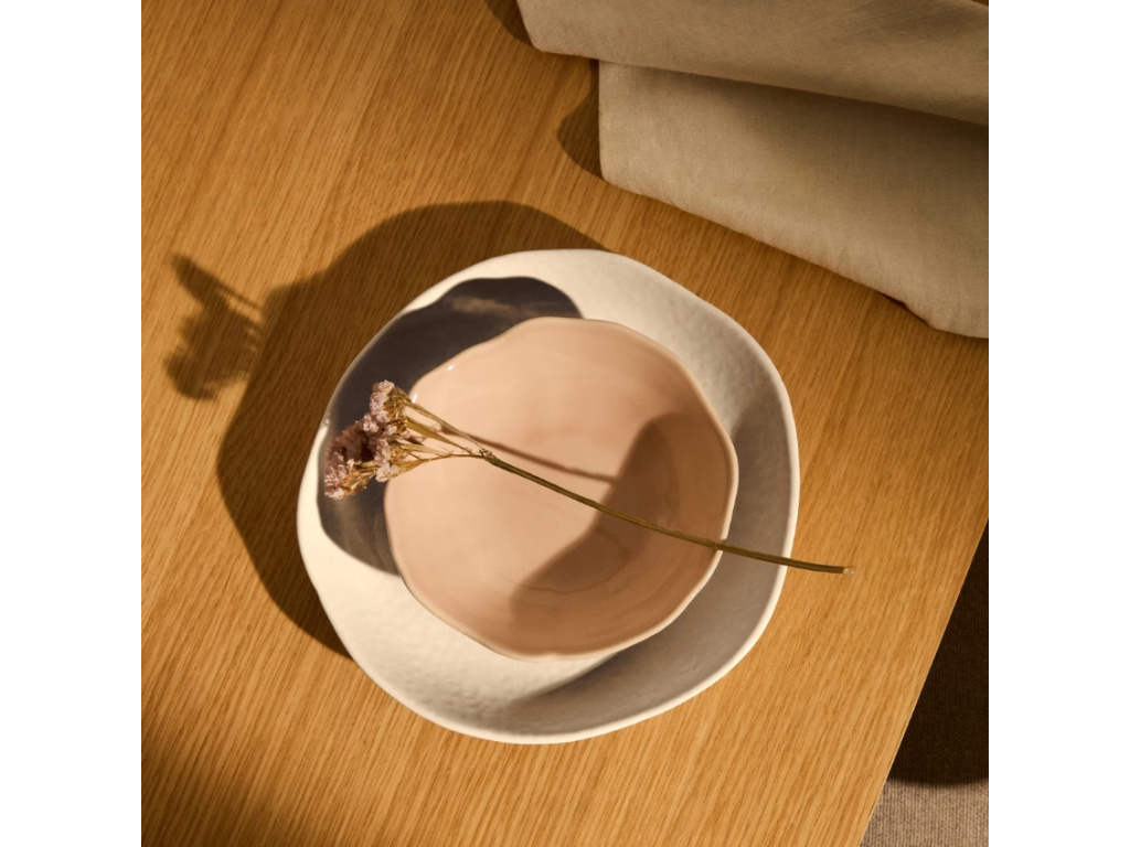 Série keramického nádobí Tiraya od značky Kave Home přinese do vaší jídelny nádech romantiky. Růžové misky a talíře doplňte bílými dezertními talířky a oživte tak prostřený stůl kombinací těchto jemných barev. Minimalistické provedení nádobí je oživeno nepravidelně zvlněnými okraji, které upoutají pozornost každého hosta. Udělejte si radost – z nového nádobí budou oblíbené pokrmy chutnat ještě o fous lépe!