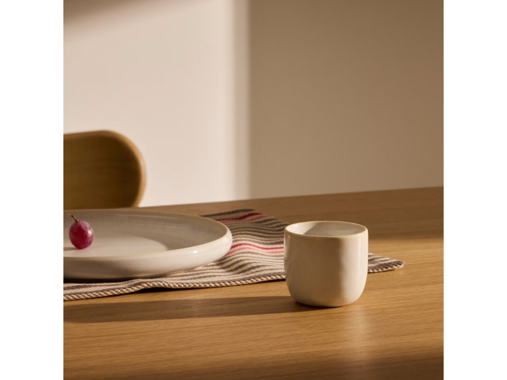 Kolekce keramického nádobí Kave Home Uilo vyniká jedinečnými tóny a texturami, které dodají vašemu stolování originální šmrnc. Každý kus je výsledkem tradiční výroby v Portugalsku s důrazem na ekologii a autentický design. Nádobí je nejen estetické, ale i praktické – vhodné do myčky i mikrovlnné trouby – a lze jej variabilně kombinovat s dalšími produkty z této kolekce.