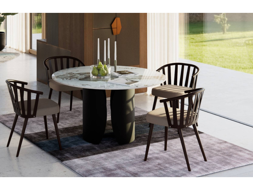 Vneste luxus a design i k vám domů s jídelním stolem Casana od italské značky Miotto. Kombinace kvalitní italské keramiky, tvrzeného skla a zaoblené ocelové podnože v elegantní černé barvě vytváří společně jedinečný kontrast, díky kterému se stůl stane dominantním prvkem v interiéru. Ke stolu se pohodlně usadí až 6 osob. Hledáte-li stylový jídelní stůl , Casana bude tou správnou volbou!