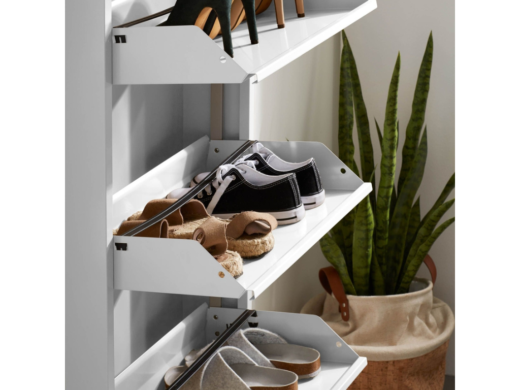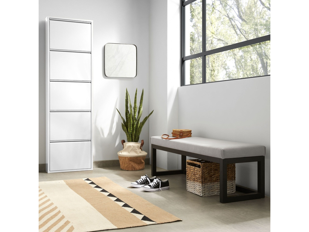 Kovový botník Kave Home Ode si oblíbíte díky jeho minimalismu a velkému úložnému prostoru. V botníku najdete celkem pět výklopných zásuvek, do kterých se vejde až 15 párů bot, a tak vaše předsíň už nikdy nebude zaplněná. Praktickým prvkem je také možnost připevnit botník na zeď. Ode se hodí do moderních chodeb a předsíní ve světlých barvách.
