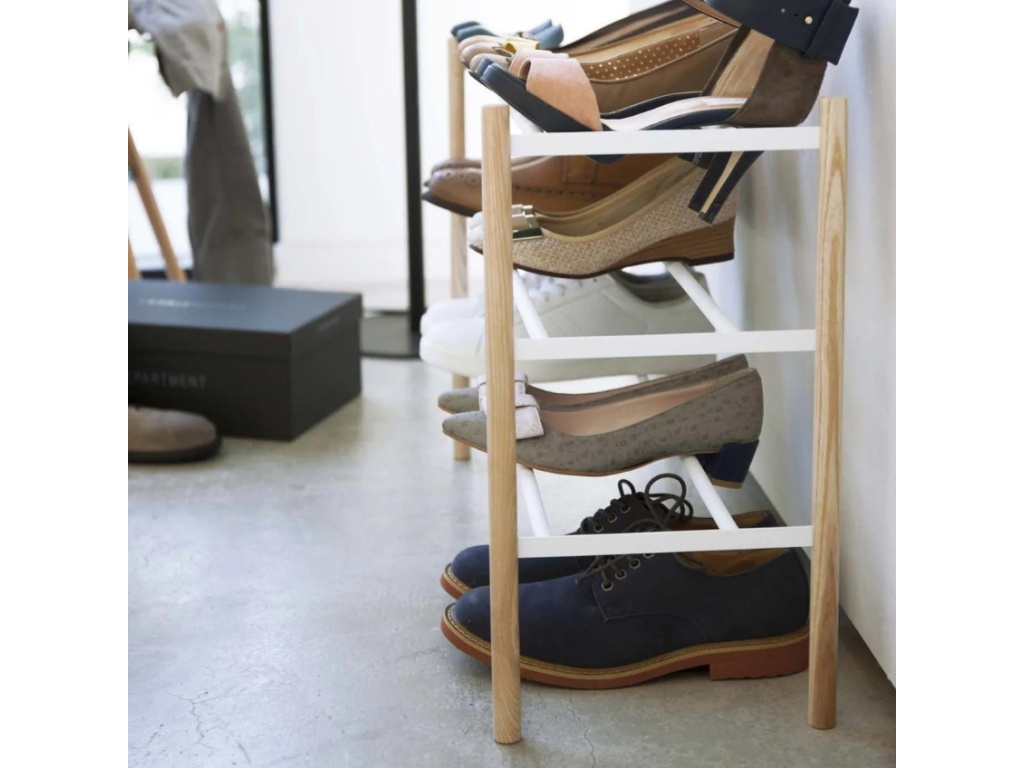 Botník Plain od značky Yamazaki je ideální pro ty, kteří hledají praktické a elegantní řešení pro uskladnění většího množství obuvi. Botník pojme 9 až 16 párů bot a jeho nastavitelná šířka umožňuje přizpůsobení potřebám prostoru. Plain je vyrobený z bíle lakovaného kovu a dřeva. Díky svému jednoduchému designu se bude hodit do minimalistických, moderních, ale i industriálních interiérů. Vybírat u nás můžete ze dvou variant – botník je dostupný v bílé i černé barvě.