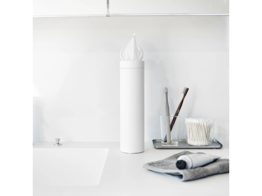 Box na ubrousky Tower je elegantní a praktický doplněk, který vám bude dělat radost doma i na cestách. Jeho kompaktní kulatý tvar skvěle padne do držáků na nápoje v autě, kapes ve dveřích nebo na jídelní či konferenční stůl. Pevné ocelové tělo zajistí stabilitu, zatímco chytré víčko udrží ubrousky čisté a vždy připravené k použití. Box snadno naplníte běžnými kosmetickými ubrousky – stačí je jednoduše srolovat. Tower spojuje minimalistický design s maximální funkčností a dělá z obyčejného předmětu stylový detail, který zpříjemní váš každodenní život.
