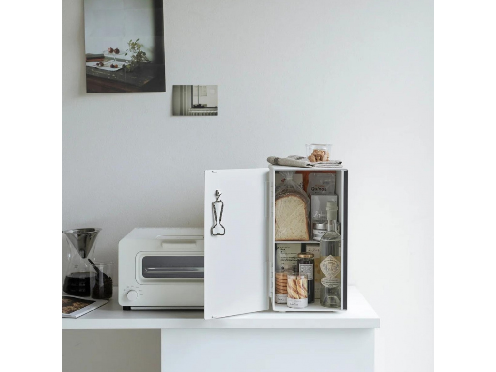 Chlebník Tower od značky Yamazaki je elegantním a praktickým řešením pro skladování pečiva ve vaší kuchyni. Tower je vyrobený z bíle lakovaného kovu, a díky svému čistému vzhledu snadno zapadne do minimalistických, moderních, ale i industriálních interiérů. Vnitřní polička umožňuje oddělené skladování různých druhů pečiva nebo dalších potravin. Chlebník je navržen s důrazem na flexibilitu použití. Díky možnosti volby otevírání vpravo nebo vlevo je snadno přizpůsobitelný jakémukoli uspořádání kuchyně. Součástí balení jsou plastové nožičky, které můžete nalepit na spodní stranu chlebník u a ochránit tak povrch pracovní desky. Nabízíme ho i v černé variantě.