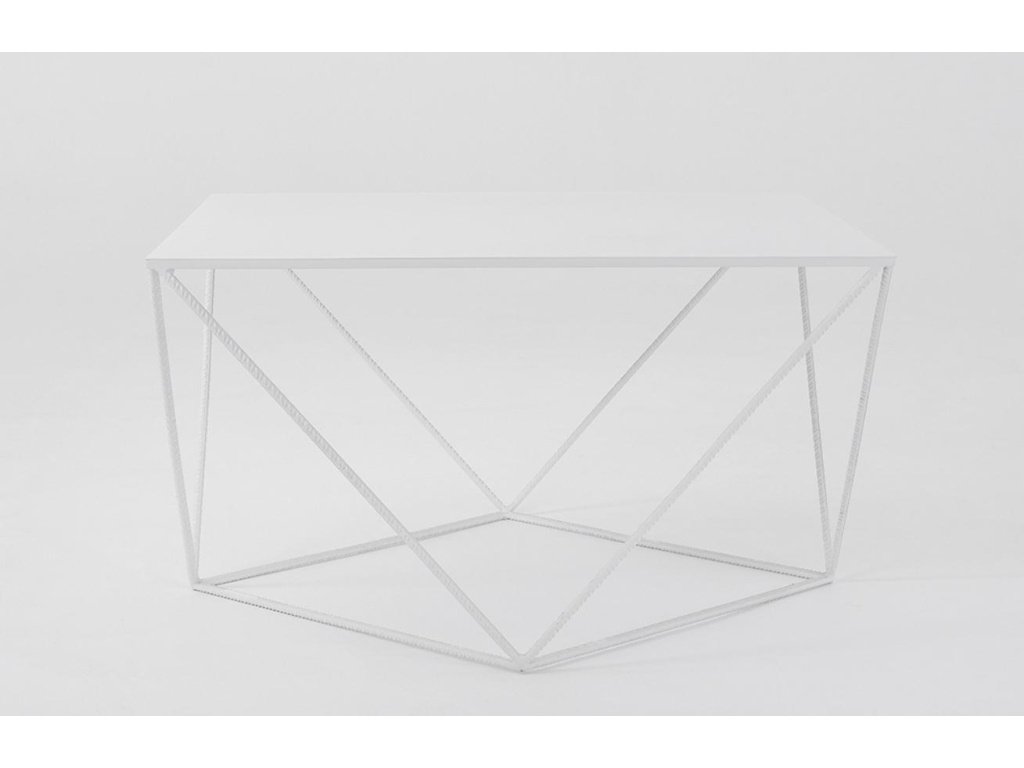 Konferenční stolek Deryl se vyznačuje svým neobvyklým tvarem podnože a industriálním vzhledem. Díky svému tvaru a celokovovému provedení se skvělé hodí do moderních interiérů. Kovová deska disponuje netradičním zkosením rohů, čímž podkresluje celkový vzhled stolku.