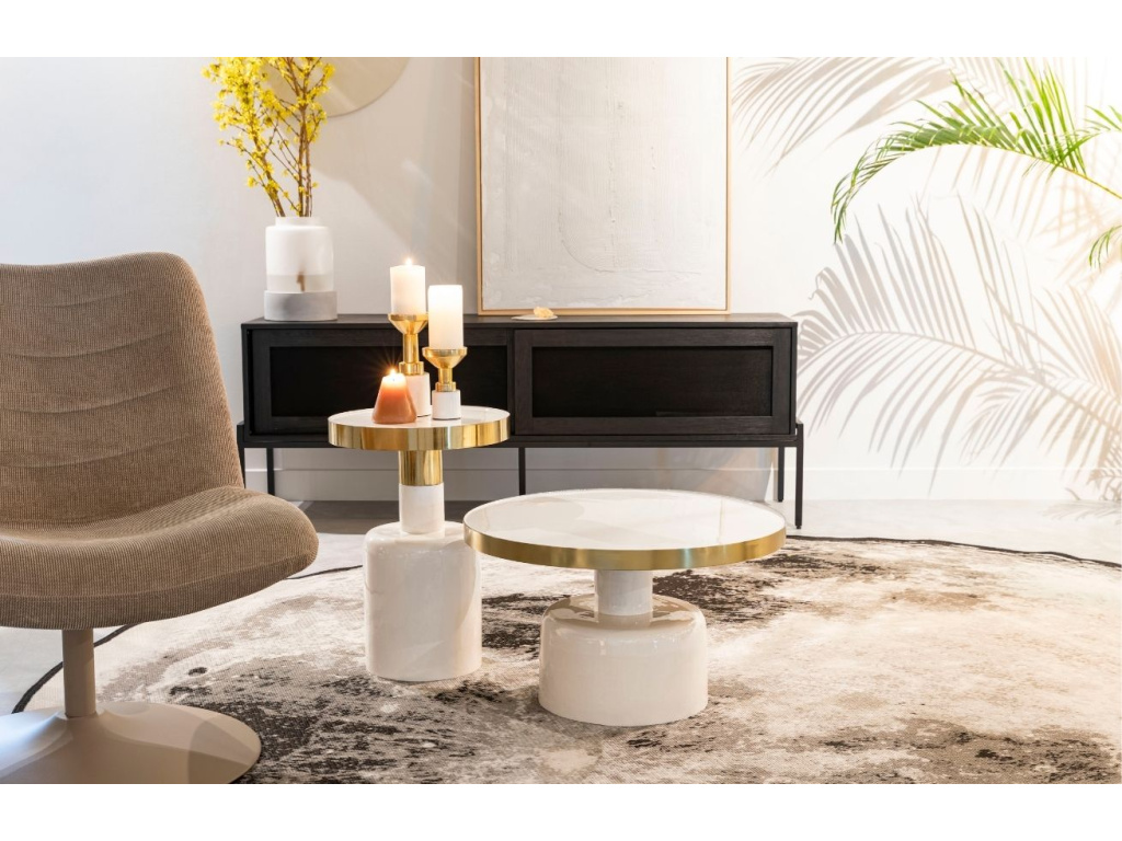Stylový konferenční stolek ZUIVER GLAM zaujme svým neotřelým vzhledem. Kombinace bílého provedení a smaltovaného kovu působí elegantně. Jeho nadčasové prvky i použité materiály se skvěle hodí nejen do hotelových prostor, ale také do vaší domácnosti. Tento stolek totiž není jen ozdobou interiéru, ale zaujme také svojí praktičností.