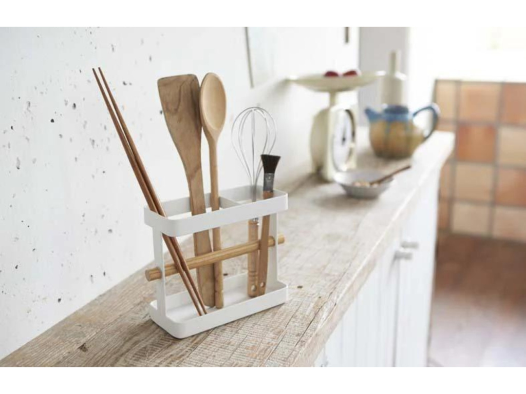 Kuchyňský stojan Tosca od značky Yamazaki je elegantní a praktický kuchyňský doplněk, který kombinuje moderní design s funkčností. Tosca je vyroben z bíle lakovaného kovu a bukového dřeva, což mu dodává moderní a zároveň přírodní vzhled. Stojan je ideální pro ukládání kuchyňských nástrojů, jako jsou vařečky, metly, obracečky a další. Využít jej můžete, ale i v jiných místnostech jako stylový organizér na různé předměty.