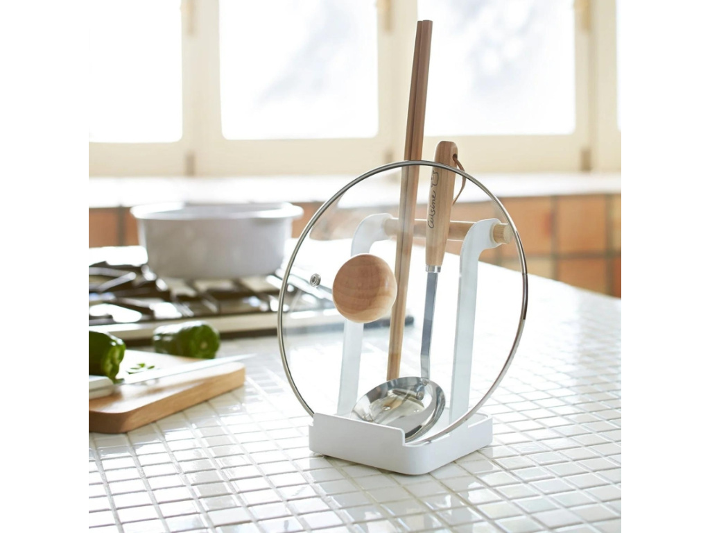 Kuchyňský stojan Tosca od značky Yamazaki je elegantní a praktický kuchyňský doplněk, který kombinuje moderní design s funkčností. Tosca je vyroben z bíle lakovaného kovu a bukového dřeva, což mu dodává moderní a zároveň přírodní vzhled. Stojánek je navržen pro držení vařeček, lžic, pokliček a dalších kuchyňských nástrojů. Jeho univerzálnost ho činí nepostradatelným pomocníkem při každodenním vaření. Tento stojánek lze také použít jako podpěru pro kuchařky, což usnadňuje čtení receptů bez potřeby držení knihy. Navíc je ideální pro umístění telefonu nebo tabletu, což umožňuje hands-free sledování receptů nebo jiného obsahu při vaření.