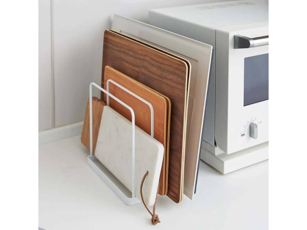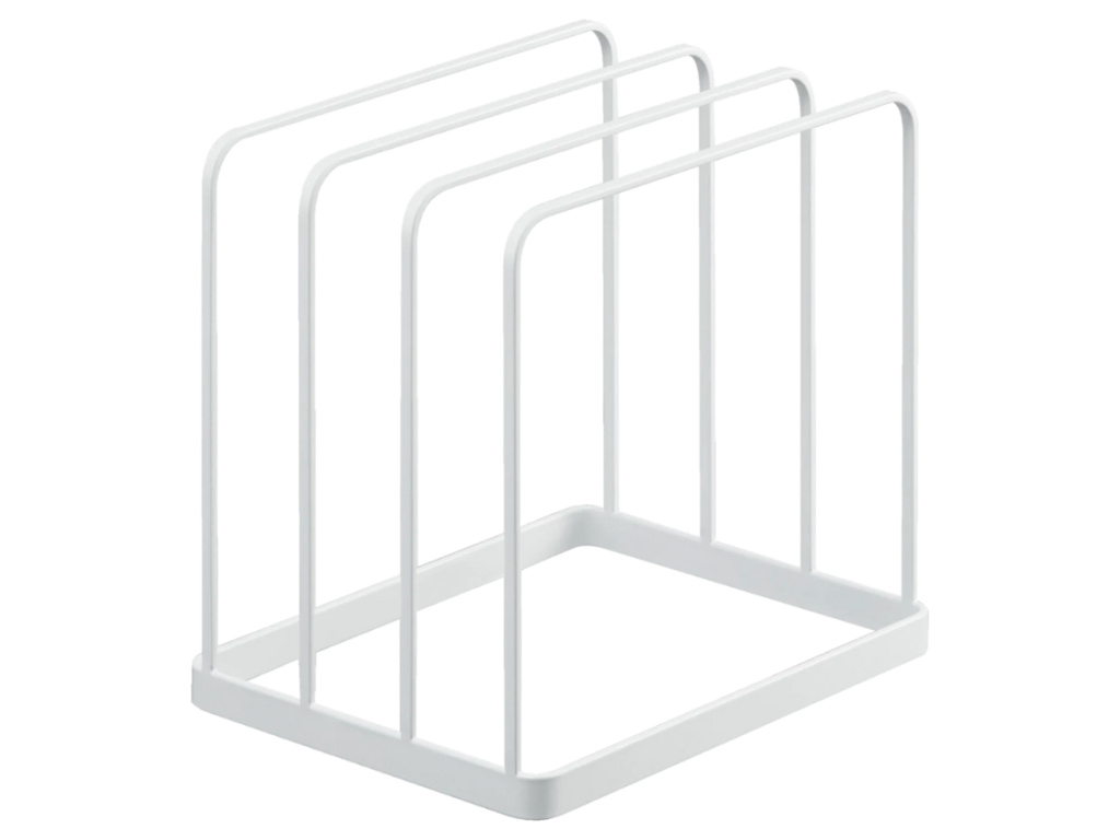 Minimalistický design stojanu Tower od značky Yamazaki zaručuje, že se stane nenápadným, ale velmi praktickým doplňkem vaší kuchyně. Stojan je vyroben z bíle lakovaného kovu a díky modernímu a čistému vzhledu se skvěle hodí do jakéhokoli kuchyňského interiéru. Kromě kuchyňských podložek a táců může být stojan využit i pro jiné předměty, jako jsou krájecí prkénka, plechy na pečení nebo dokonce desky s recepty. Jeho univerzální design a praktická velikost z něj činí všestranného pomocníka nejen v kuchyni, ale i v jiných částech domácnosti.