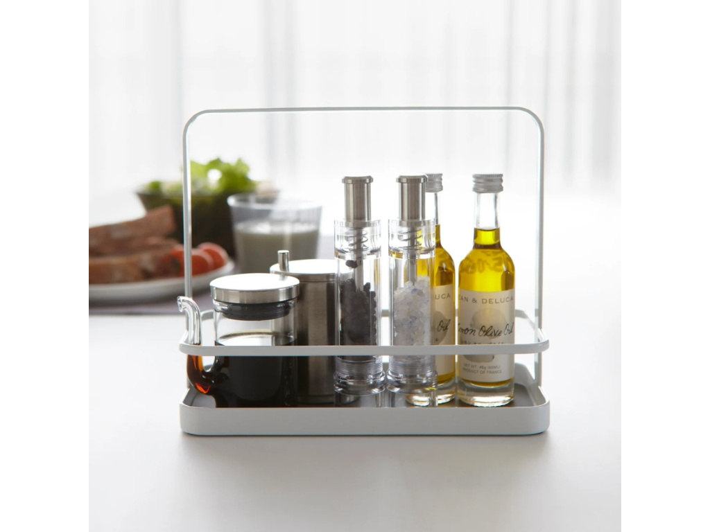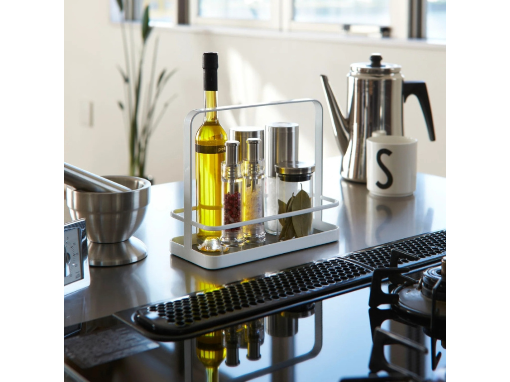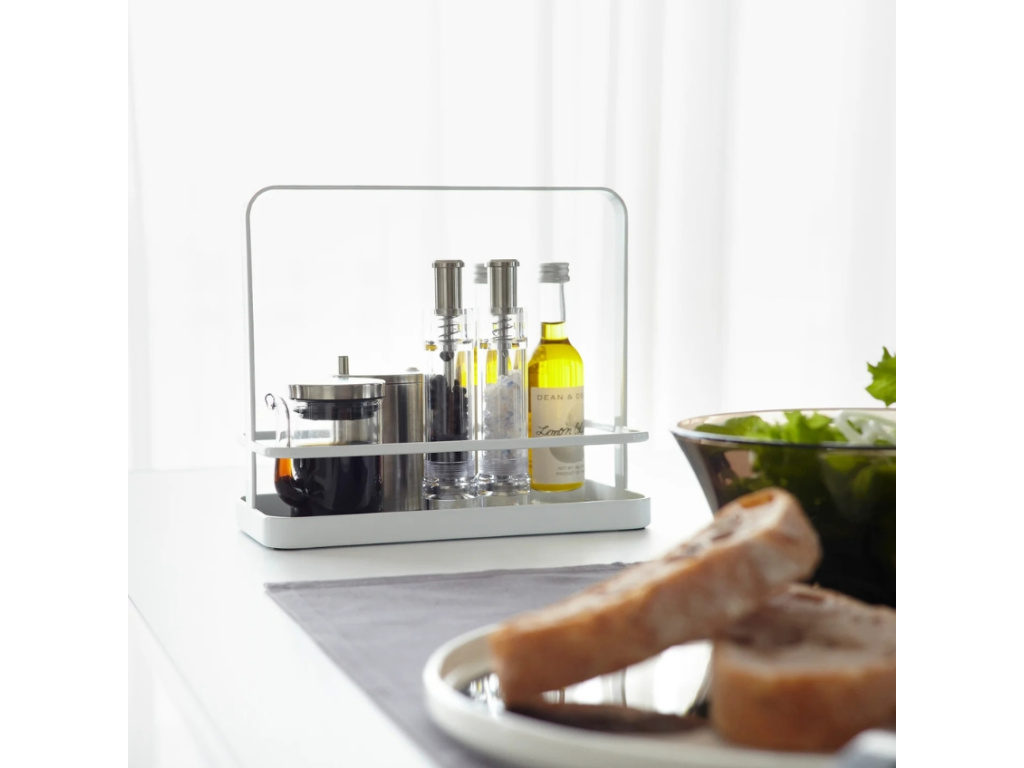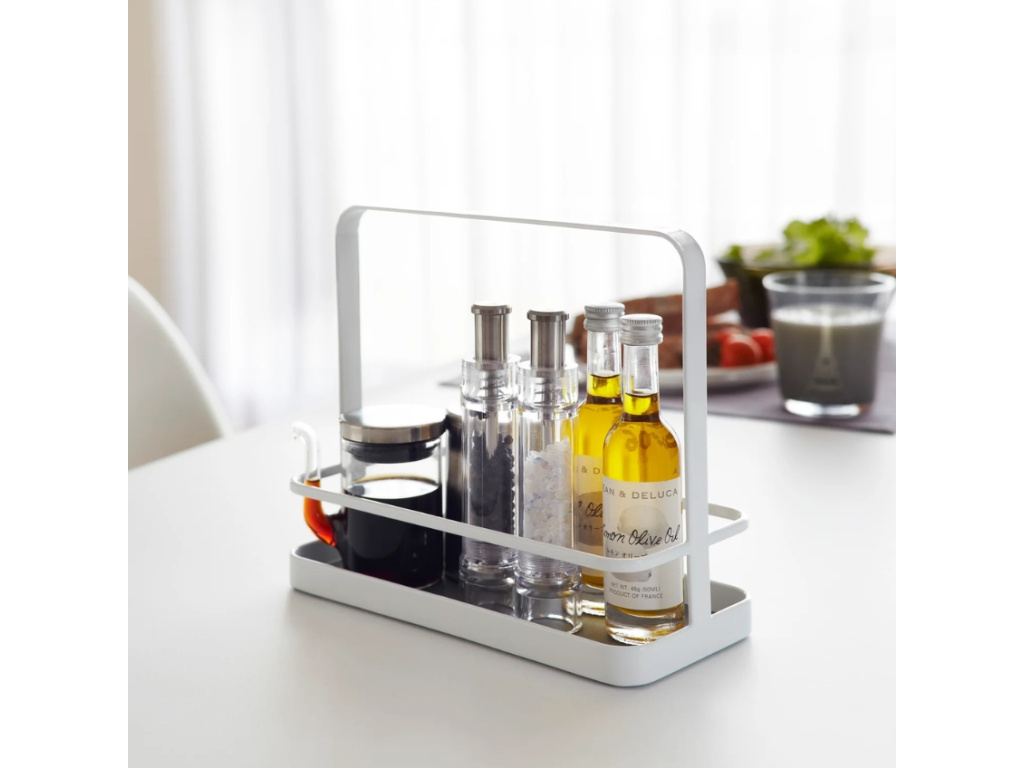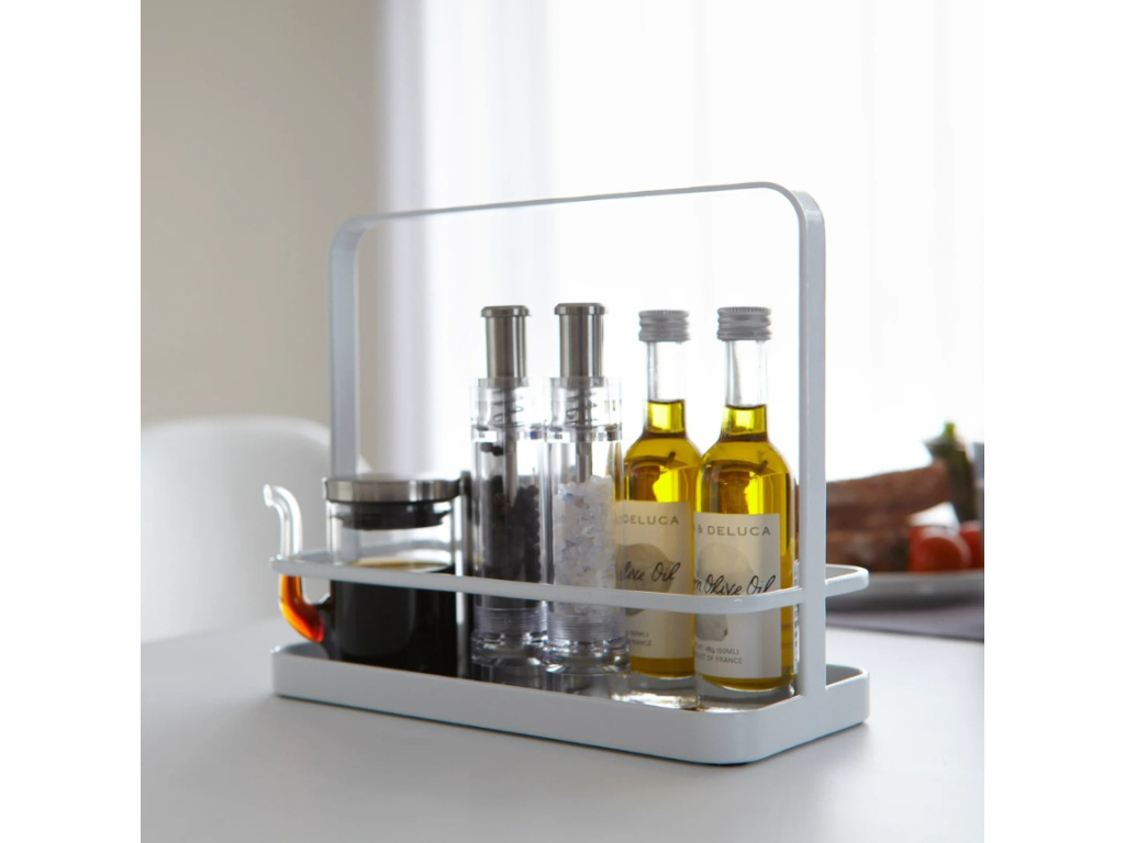 Udržujte kuchyň i jídelní stůl elegantní a přehledný. Minimalistický stojánek Tower od značky Yamazaki je ideálním místem pro uložení soli, pepře, oleje nebo dalších oblíbených dochucovadel. Díky štíhlé konstrukci z lakovaného kovu zabere minimum místa, ale přitom pojme vše, co potřebujete mít při vaření nebo stolování po ruce. Protiskluzová silikonová podložka udrží lahvičky na svém místě a praktické madlo usnadní přenášení. Nadčasový design zapadne do každého interiéru a každému vaření dodá špetku pořádku i stylu.