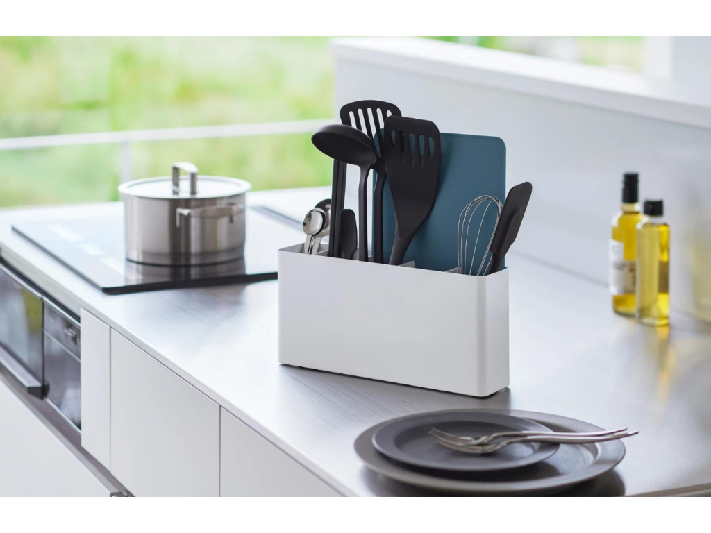 Kuchyňský stojan Tower od značky Yamazaki je praktickým a elegantním řešením pro udržení pořádku ve vaší kuchyni. Stojánek je vhodný pro uložení kuchyňských nástrojů různých velikostí, jako jsou vařečky, naběračky, metly a další náčiní. Kromě toho disponuje prostorem pro malé prkénko do tloušťky 6 mm a šířkou 25 cm. Tower je vyroben z bíle lakovaného kovu a ABS plastu, což zajišťuje jeho dlouhou životnost a snadnou údržbu. Díky tomuto stojanu budete mít všechny důležité nástroje vždy po ruce, což zlepší efektivitu a pohodlí při vaření.