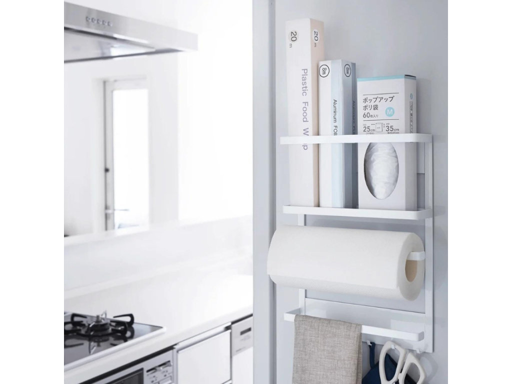 Multifunkční kuchyňský organizér Tower od značky Yamazaki je praktický a stylový doplněk, který pomáhá udržet kuchyňské nástroje a potřeby přehledně uspořádané a snadno dostupné. Tower je vyroben z kvalitního lakovaného kovu, což zajišťuje jeho odolnost a dlouhou životnost. Organizér je ideální pro zavěšení vařeček, špachtlí, nebo jiných kuchyňských potřeb nebo pro uložení kořenek a dalších malých kuchyňských potřeb. Také umožňuje snadný přístup k papírovým či textilním utěrkám, kdykoliv je potřebujete. Velký plošný magnet umožňuje snadné a bezpečné připevnění organizéru na jakýkoliv kovový povrch, jako je lednička nebo kovová kuchyňská deska.