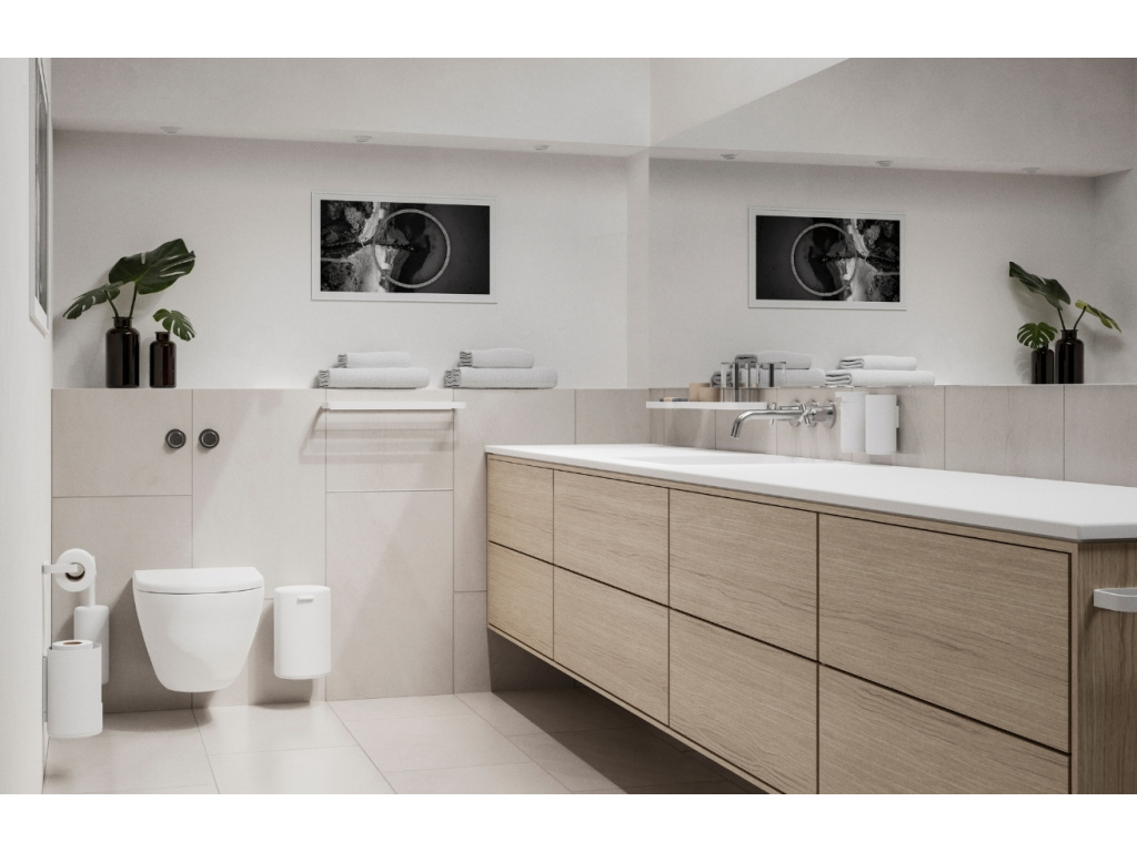 Minimalistický vzhled a kvalitní provedení jsou hlavními přednostmi odpadkového koše Rim, který elegantně doplní jakoukoli moderní koupelnu či toaletu. Nástěnné provedení navíc šetří místo na podlaze a usnadňuje úklid pod ním, čímž zajišťuje maximální hygienu. Čistý design je typický pro celou kolekci Rim, se kterou hravě sladíte celou místnost k úplné dokonalosti. Prestiž této kolekce potvrzuje i získané ocenění German Design Award Winner 2022 za vynikající design. Závěsný dávkovač mýdla, stojan na zubní kartáčky, držák na ručníky, miska na tuhé mýdlo... tato kolekce nabízí vše, co vás jen napadne!