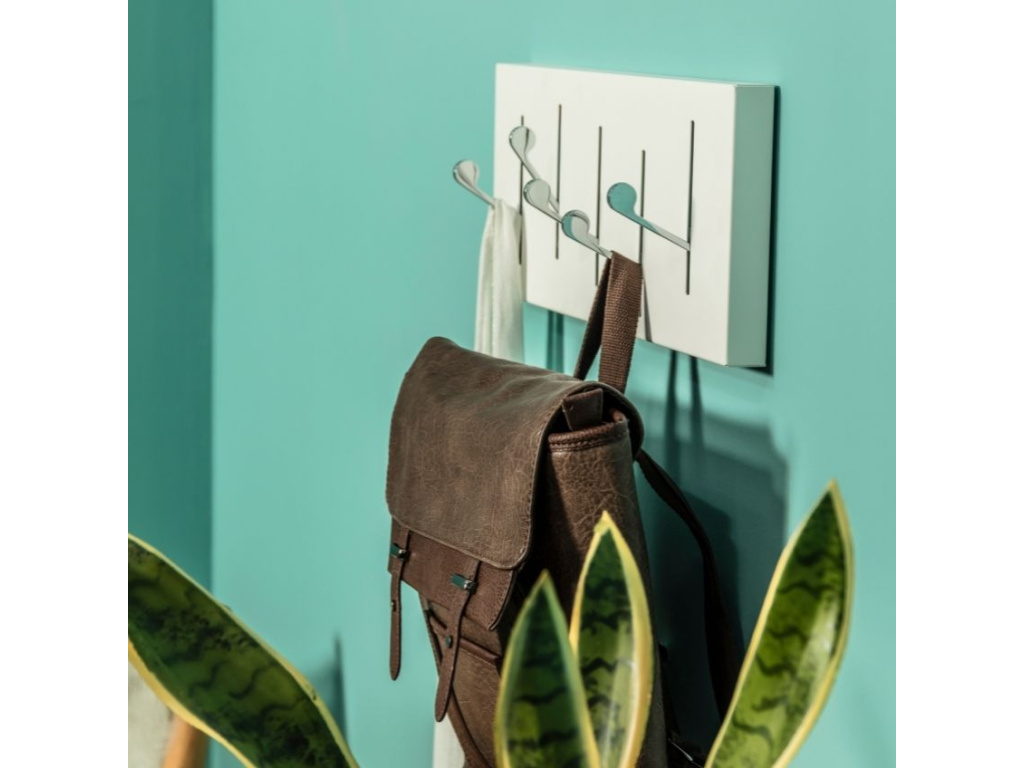Designový nástěnný věšák Kave Home Andrey je vyrobený z lakovaného kovu s chromovanými háčky a dokonale doladí každý interiér. Díky svému minimalistickému zpracování a kombinaci bílé a stříbrné barvy je perfektním a elegantním kouskem do každé vstupní haly či chodby. Využít jej můžete nejen na oblečení - skvěle se hodí také k zorganizování tašek a kabelek.