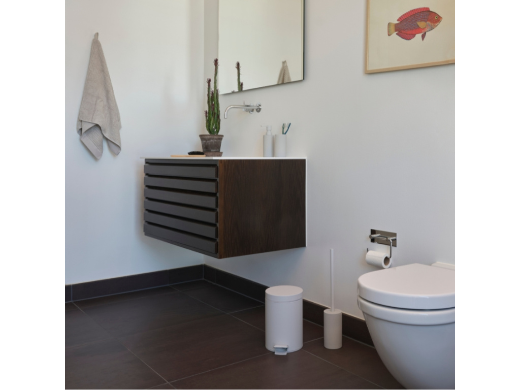 Pedálový koš Solo od značky Zone Denmark je vyroben z nerezové oceli s povrchovou úpravou soft-touch a nabízí kapacitu 3 litry. Kolekce Solo zahrnuje také dávkovač mýdla, WC štětku a stojan na zubní kartáčky, přičemž všechny produkty jsou dostupné ve více barevných provedeních. Minimalistický design, kompaktní velikost a jednotná barevnost vykouzlí ve vaší koupelně dokonalý řád.