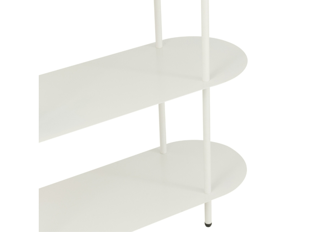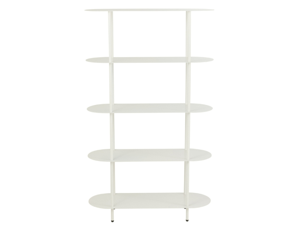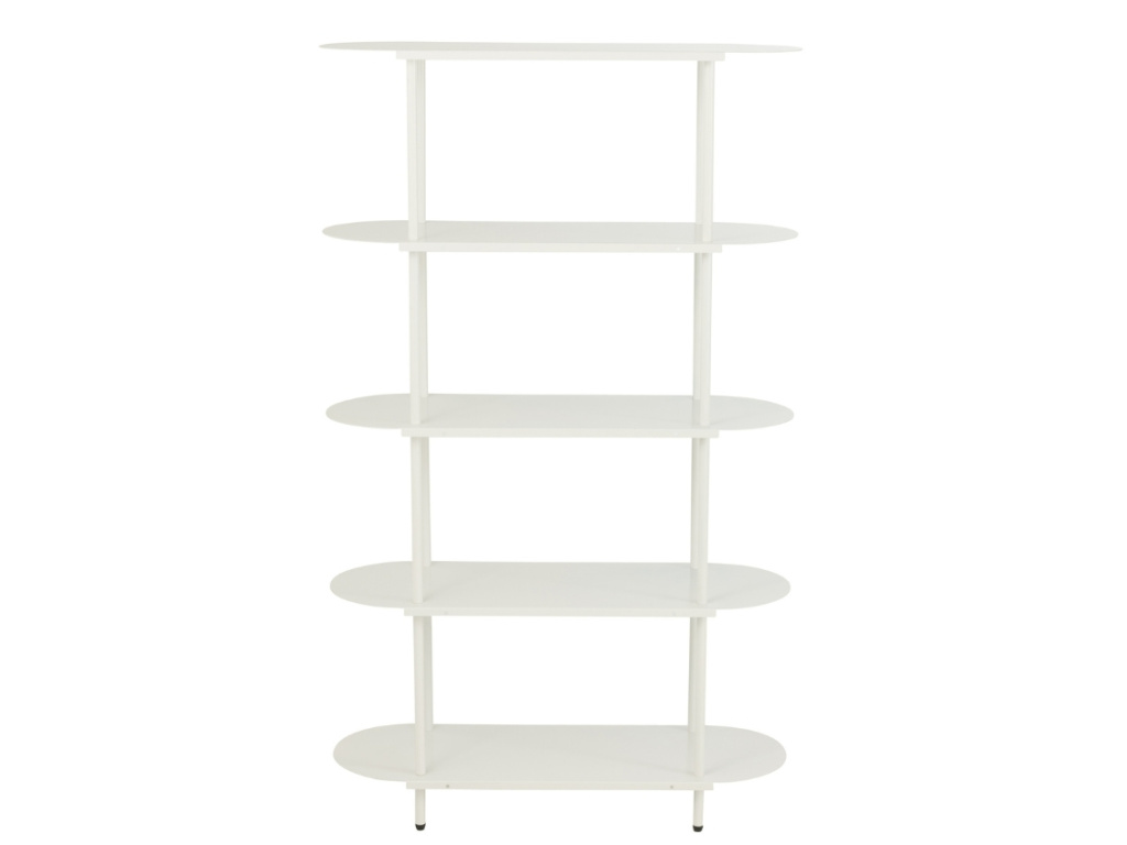 Regál Oval přináší do vašeho domova lehkost a moderní eleganci. Díky svému jedinečnému oválnému tvaru polic působí jemně a zároveň výjimečně. Pět polic poskytuje dostatek místa pro vaše knihy, dekorace, suvenýry nebo květiny. Neutrální bílá barva se snadno sladí s ostatním nábytkem a opticky prosvětlí místnost. Jeho minimalistický vzhled skvěle doplní jakýkoliv moderní a skandinávský interiér, takže se tento kousek výborně hodí do obývacího pokoje, ložnice i kanceláře. Oval je designový prvek, který zharmonizuje váš prostor.