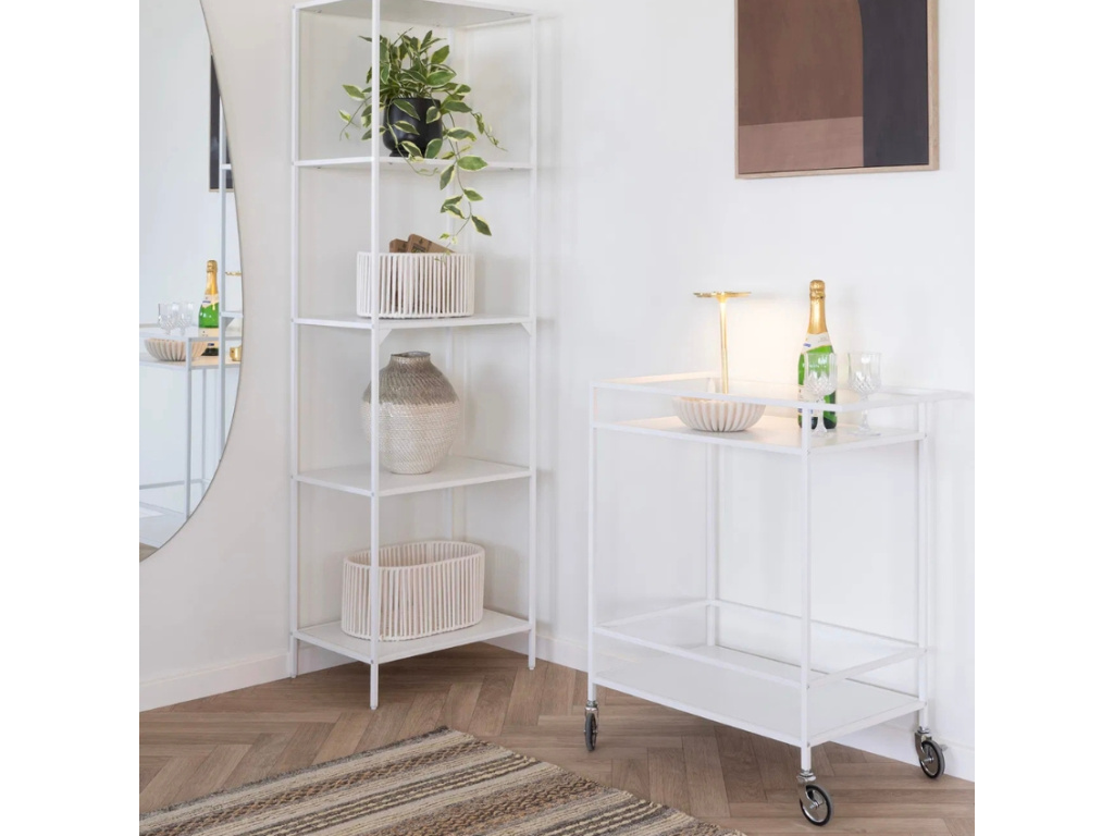 Univerzální odkládací vozík Winter zaujme svým jednoduchým průmyslovým vzhledem. Vozík má víceúčelové využití jako barový stolek při oslavě, servírovací vozík nebo jen prostor pro dekorace a květiny. Příjemným bonusem jsou kovová kolečka, díky nimž lze vozík snadno přemisťovat. Své místo najde v každém stylovém moderním prostředí zaměřeném na funkčnost.