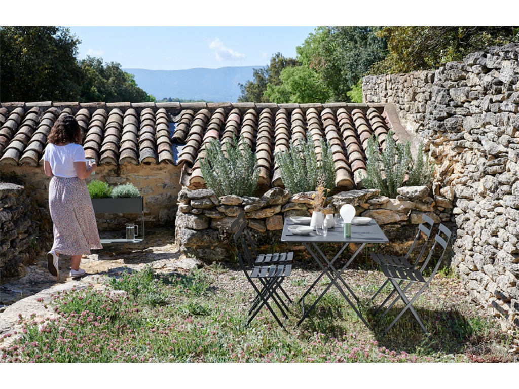 Celokovový stůl Bistro je inspirován stoly, které byly vyráběny na konci 19. století a které byly typické pro prodejce limonád a rychlého občerstvení. Dnešní moderní pojetí tohoto stolu neztratilo nic ze své předešlé slávy ani funkčnosti. Naopak, model, který přestavuje společnost Fermob získal na vynalézavosti a veselosti. Stoly Bistro jsou vyráběny z prvotřídních materiálů a jsou testovány tak, aby splňovaly standardy kvality evropských norem (NF EN 581-1 a NF EN 581-2). Exkluzivní systém antikorozní úpravy pro venkovní použití a anti-UV práškový lak (standardizované testy AFNOR) dělá ze stolu ideálního společníka jak do venkovních, tak i do komerčních prostor.