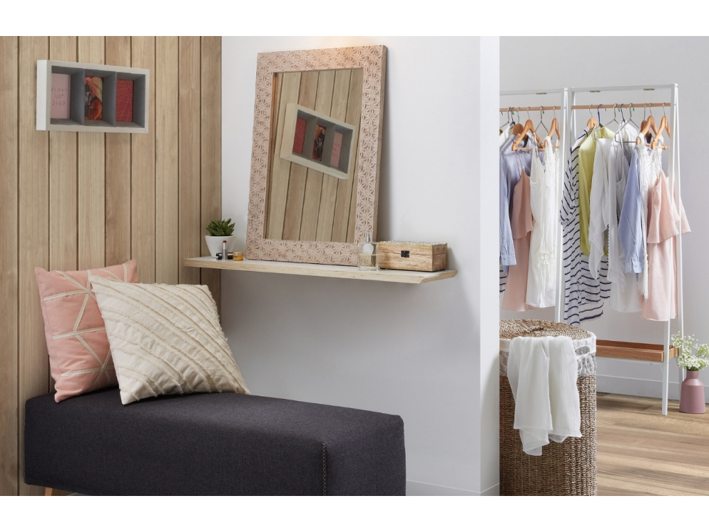 Kovový věšák s poličkou z dubové dýhy Kave Home Benny využijete nejen na bundy a kabáty, ale bezpochyby oceníte také jeho odkládací poličku na doplňky či obuv. Díky svému tvaru a barevnému provedení bude věšák Benny vynikat v moderním interiéru, ve kterém se stane zajímavým doplňkem. Svým vzhledem a tvarem je tak zástupcem spojení praktičnosti a designu.