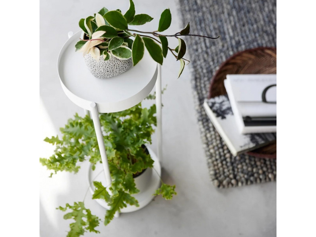Stojan na květiny Tower od značky Yamazaki je multifunkční kousek, který se dá se použít také jako odkládací stolek či stolek na dekorace. Tower je vyroben z bíle lakovaného kovu a je doplněn o skrytá kolečka, která zajišťují snadnou manipulaci po prostoru. Jeho minimalistický design se snadno začlení do jakéhokoli prostředí. Bude zde nejen praktickým doplňkem, ale také stylovou dekorací! Tower je dostupný i v černém provedení.