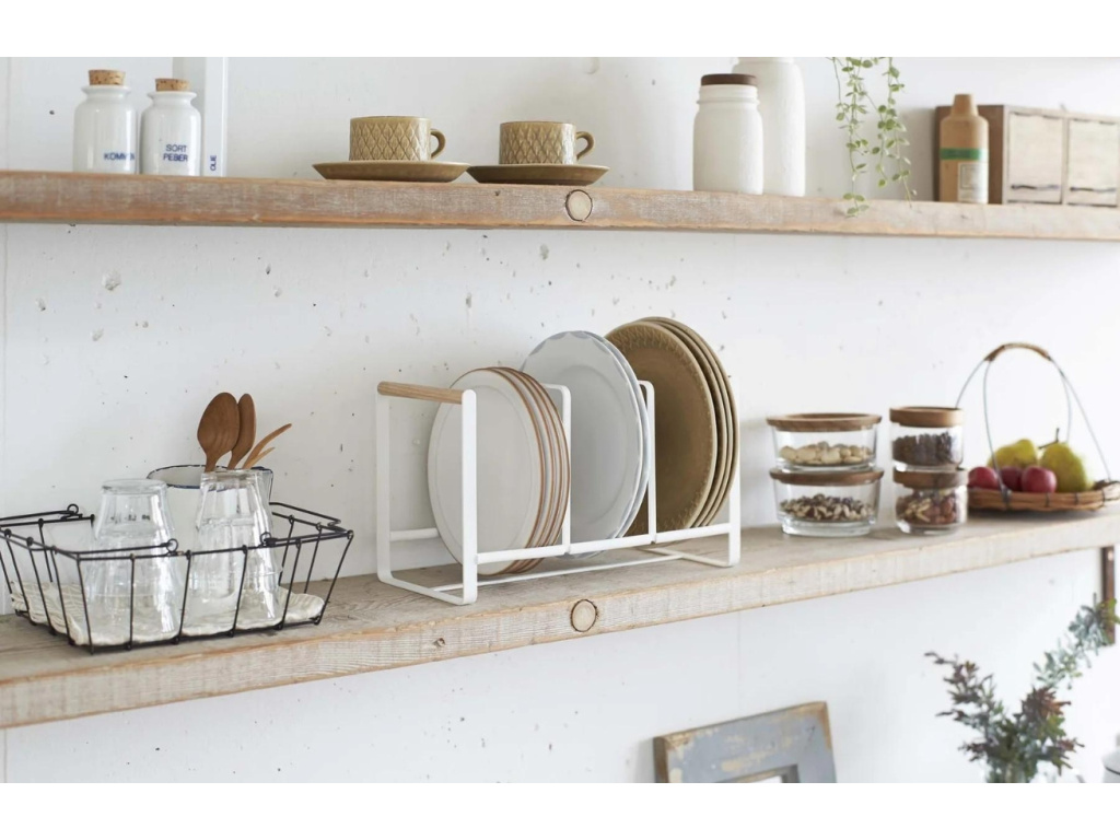Elegantní stojan na talíře Tosca od značky Yamzaki bude praktickým prvkem do vaší kuchyně. Tosca je vyrobený z bíle lakovaného kovu ve spojení s masivním bukovým dřevem. Jeho design poskytuje dostatek místa pro talíře o průměru 24 cm. Díky svému designu se bude skvěle hodit do interiérů laděných do skandinávského, moderního nebo minimalistického stylu.