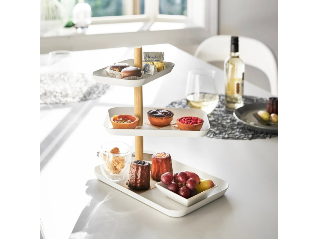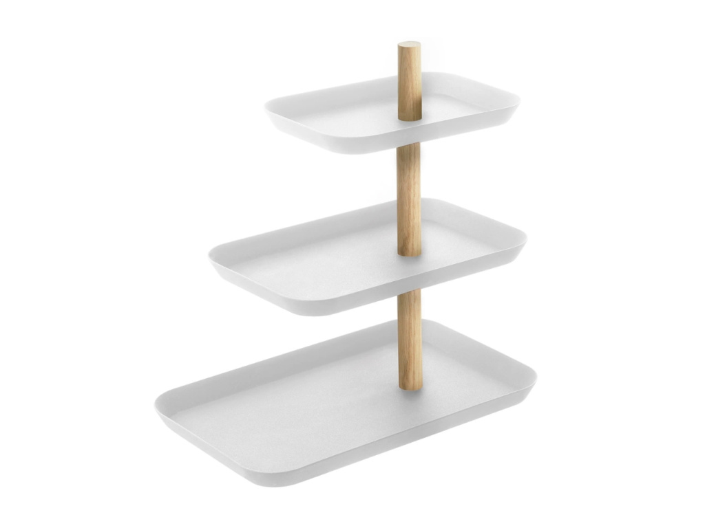 Podnos Rin od japonské značky Yamazaki je víc než jen praktický pomocník – je to designový kousek, který zaujme na první pohled. Tři ladně otočné misky s jemným dřevěným detailem vám otevřou svět stylového servírování i přehledného ukládání drobností. Rin nabízí stylový prostor pro servírování tapas, dezertů nebo sladkostí, ale stejně skvěle poslouží i jako organizér na šperky, hodinky, brýle nebo kancelářské drobnosti. Každá miska se otáčí o 360°, takže si snadno uspořádáte své drobnosti a vždy k nim máte pohodlný přístup. Jeho nadčasový design propojuje funkčnost s elegancí a jemným japonským minimalismem, díky kterému se stane nejen praktickým, ale i krásným doplňkem vašeho interiéru. S Rinem vystavíte své poklady nebo pohoštění tak, aby opravdu vynikly – jednoduše a s grácií.