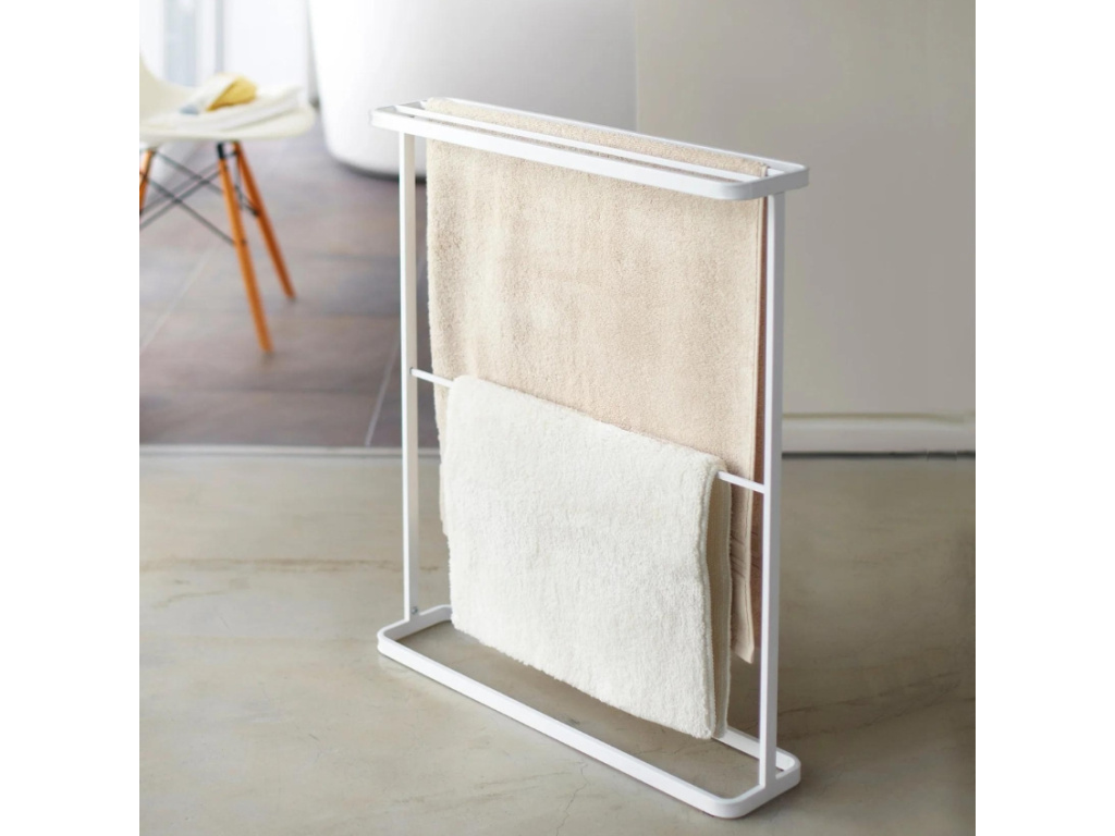 Minimalistický stojan na ručníky Tower od značky Yamazaki je dokonalým spojením elegance a praktičnosti pro vaši koupelnu. Stojan je vyrobený z bíle lakovaného kovu a přináší moderní a jednoduchý design, který se snadno začlení do různých prostorů. Díky svému kompaktnímu provedení nezabírá příliš místa, a přesto nabízí dostatečný prostor pro zavěšení ručníků podle vašich potřeb. Spodní tyč můžete využít na sušení koupelnových předložek.Stojan nabízíme v bílé i černé variantě, takže si můžete vybrat tu, která nejlépe ladí s vaším interiérem.