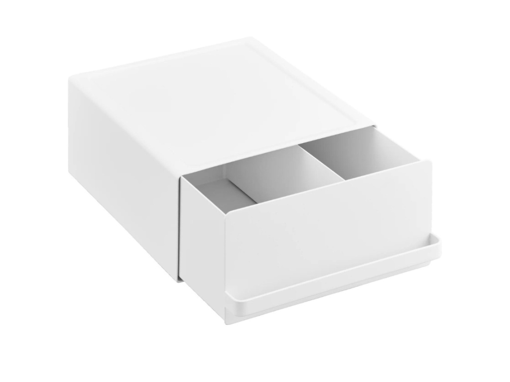 Organizér Tower od značky Yamazaki je stylové a praktické řešení pro organizaci různých předmětů. Organizér je vyroben z bíle lakovaného kovu, což zajišťuje jeho pevnost, stabilitu a dlouhou životnost. Nastavitelná vnitřní přepážka umožňuje uspořádat různé předměty přesně podle vašich potřeb. Horní plocha může být použita k umístění malých spotřebičů nebo jiných předmětů. Díky svému univerzálnímu použití je vhodný pro různé prostředí a účely, od domácí kanceláře po kuchyň nebo dílnu.