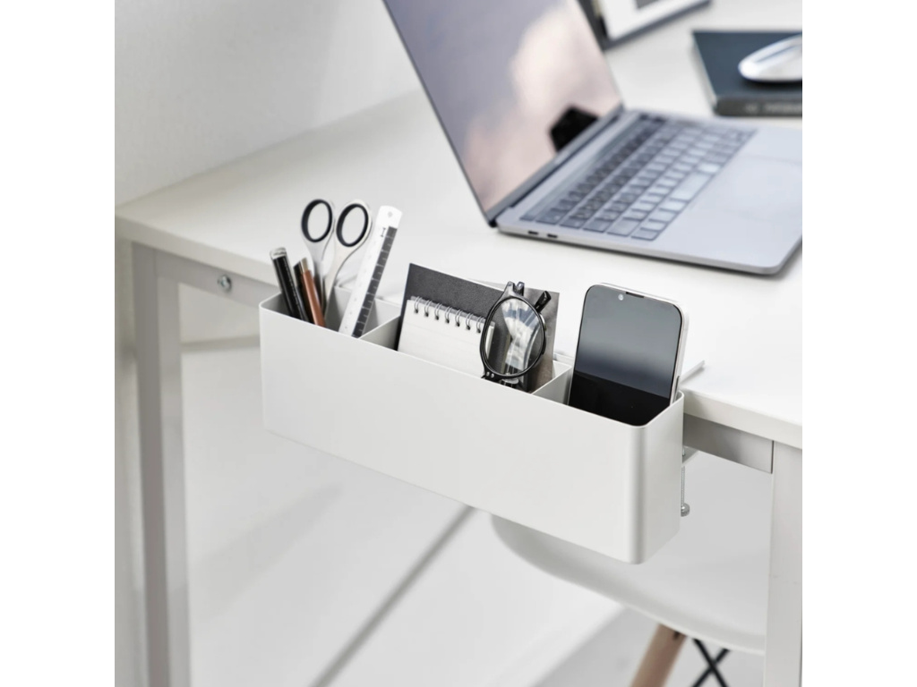 Organizér Tower od Yamazaki se jednoduše připevní ke stolu, pracovní desce nebo poličce pomocí nastavitelných šroubů – bez vrtání, bez starostí. Získáte tak okamžitě přehledný a stylový prostor na drobnosti, které chcete mít po ruce. Díky magnetickým přepážkám si vnitřní prostor snadno upravíte podle vlastních potřeb, ať už ukládáte kancelářské potřeby, kuchyňské pomůcky nebo drobnou elektroniku. Otevřené dno navíc umožňuje vedení nabíjecích kabelů, takže svůj telefon nebo tablet můžete pohodlně nabíjet přímo v organizéru. Tower je důkazem, že i malé řešení může mít velký efekt. Minimalistický, funkční a promyšlený do posledního detailu.