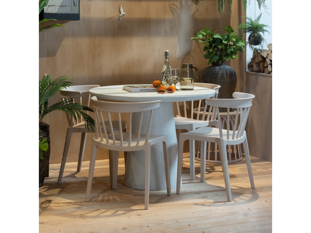 Nádherný jídelní stůl Danom má nádech moderního stylu a zaujme vás díky volbě materiálu. Podnož je vyrobená z vláknitého jílu a stejně jako deska stolu má povrchovou úpravu v dekoru bílého betonu. Hodí se do moderních a světlých interiérů i exteriérů, a tak jídelní stůl využijete nejen v domácím prostředí, ale také například na zahrádkách kaváren či restaurací.