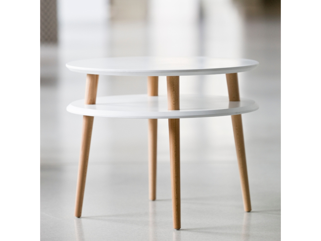 RAGABA UFO je minimalistický konferenční stolek, který ztělesňuje podstatu skandinávského designu. Deska stolku a police jsou vyrobené z lakovaného MDF a elegantní nádech dodává stolku zešikmená kulatá podnož z bukového masivu. Police poskytuje praktický úložný prostor na oblíbené drobnosti, jako je ovladač či mobilní telefon. UFO se bude skvěle vyjímat v moderních interiérech například vedle pohovky či křesla.